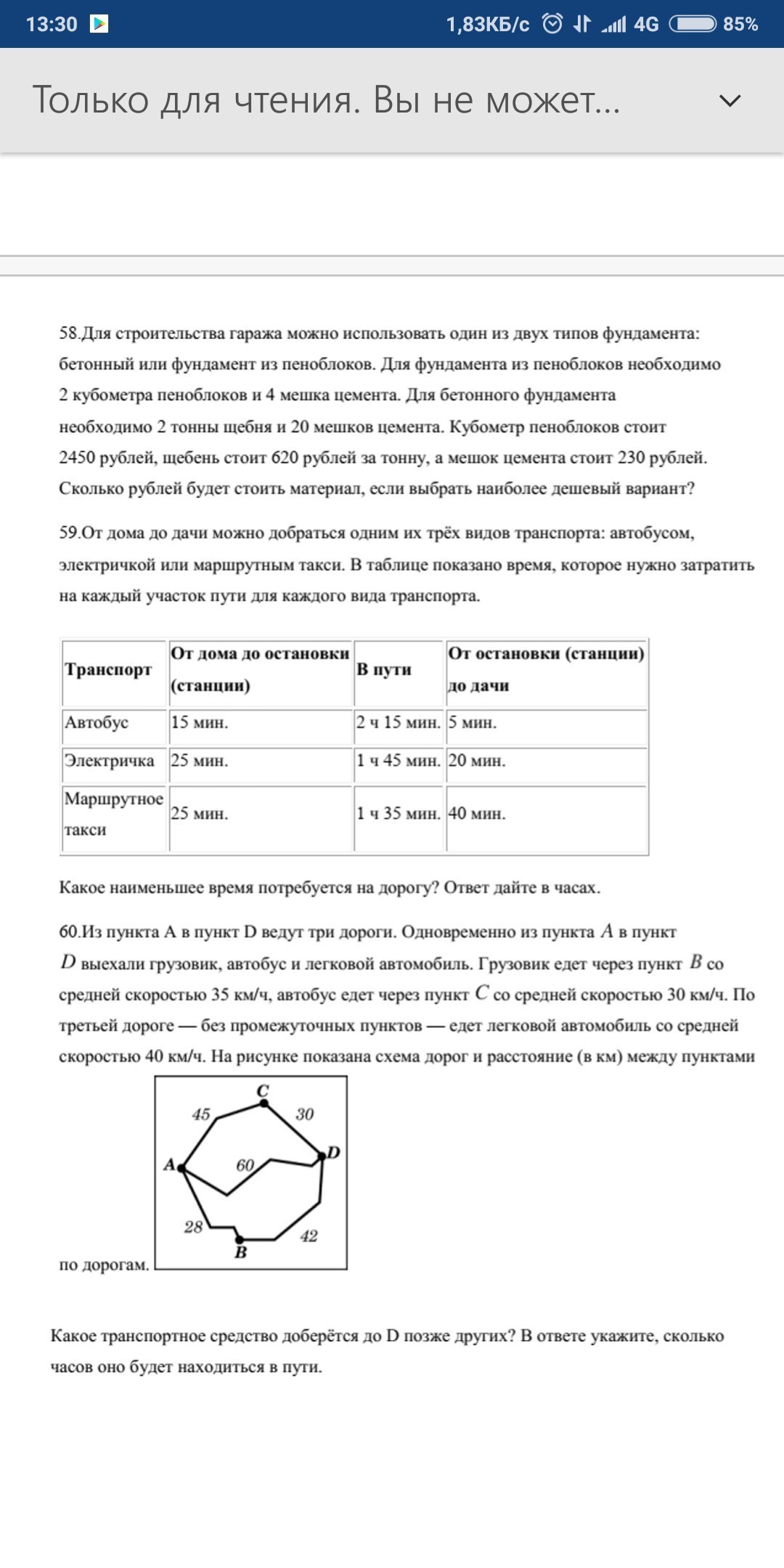 2.На электричке будет быстрее всего т.к. на автобусе затраченное время будет 2 ч. 35 мин. на электричке 2ч. 30 мин. на марш. такси 2 ч. 40 мин.