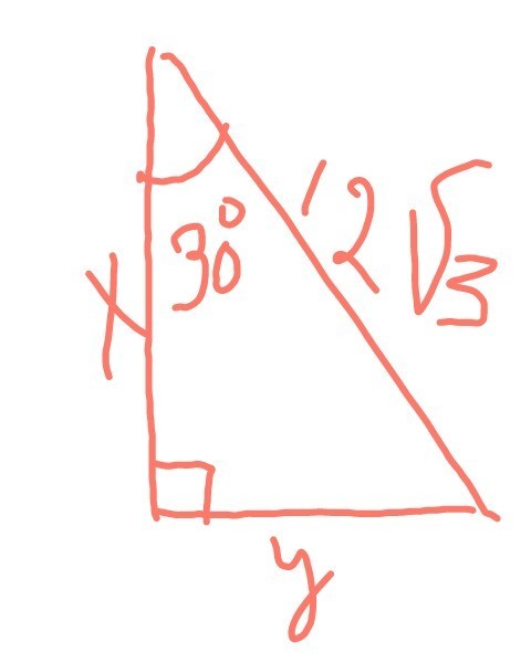 Против угла в 30° лежит катет, в 2 раза меньше гипотенузы, у= 12√3/2=6√3.
