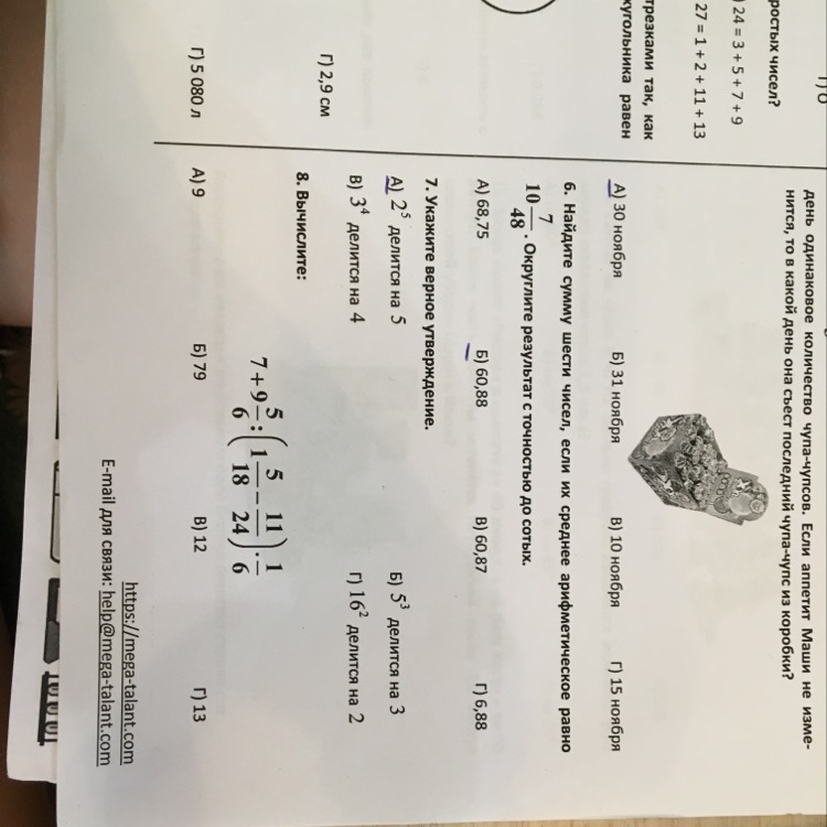 =7+59/6:(23/18-11/24)*1/6=7+59/6:(92/72-33/72)*1/6=7+59/6:59/72*1/6= 7+59/6*72/59*1/6=7+72/6*1/6=7+72/36=7+2=9
