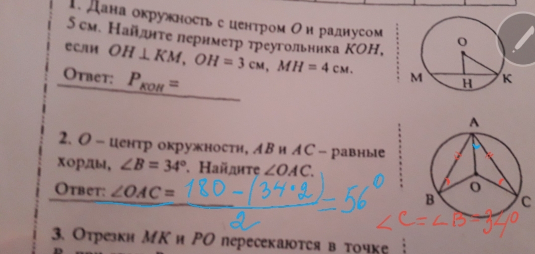 АВ=АС - треугольник АВС равнобедренный и < В=< С.