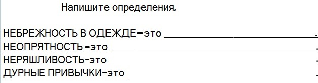 3. Неряшливость - отрицательное нравственно-этическое качество личности, проявляющееся в небрежном отношении к личным вещам – к одежде, обуви, книгам, тетрадям и т.д., в неаккуратности…