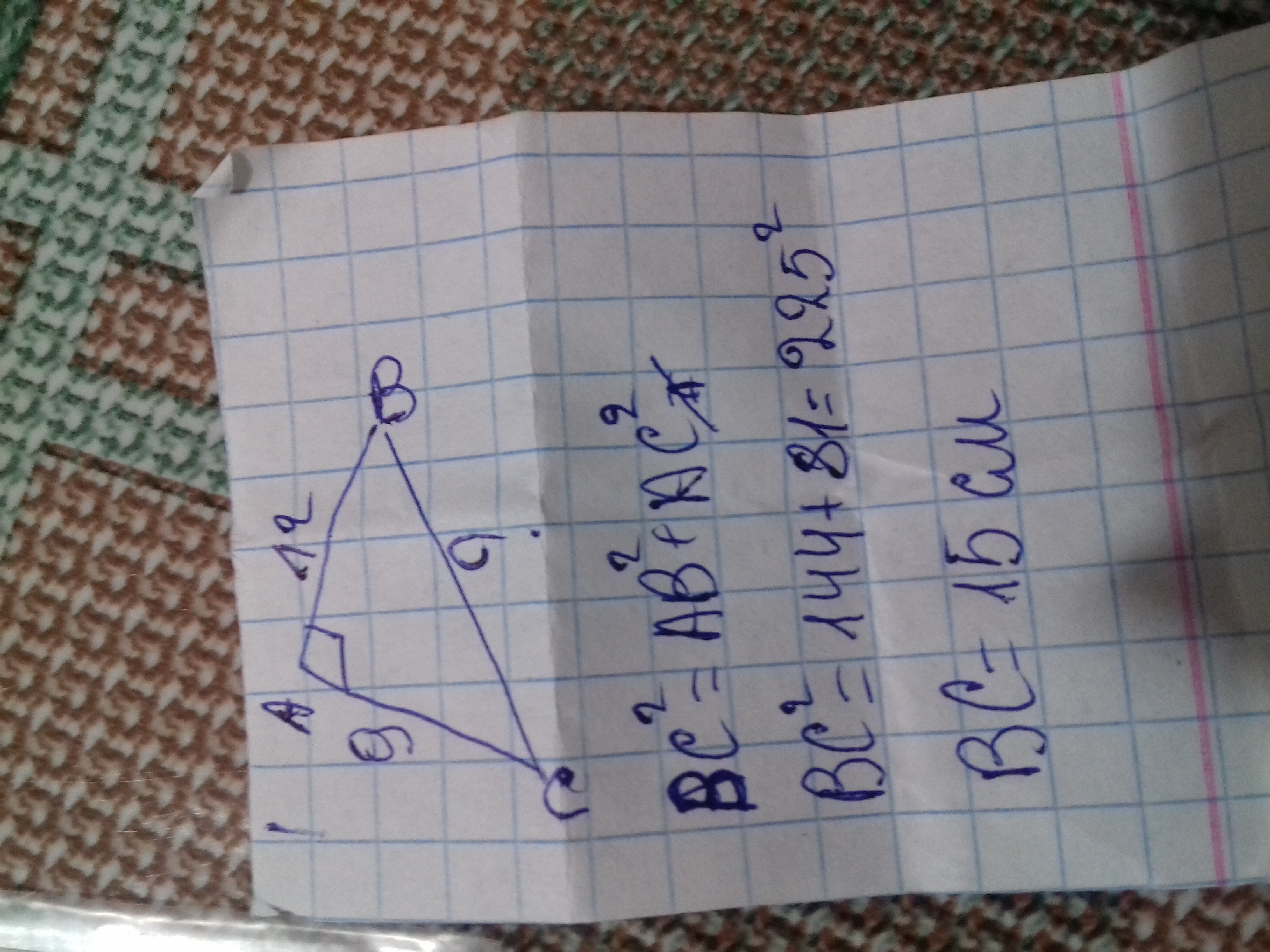 используя данные указанные на рисунке найдите гипотенузу прямоугольного треугольника