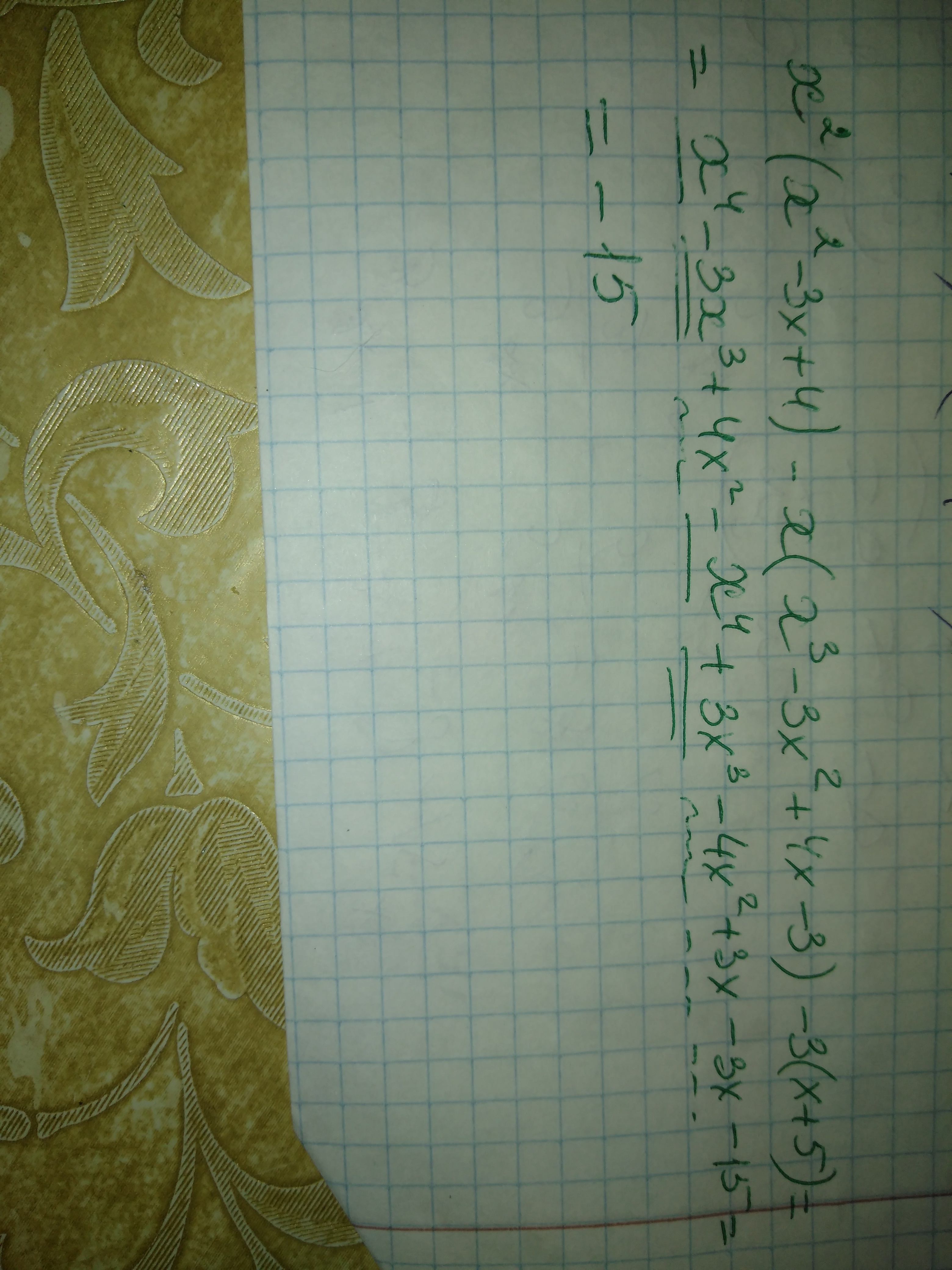 Докажите что выражение x² (x² - 3x + 4) - x (x³ - 3x²+ 4x - 3) - 3 (x +5) принимает одно и то же значение при любом значении переменной x