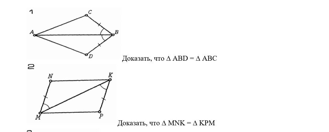 2 - MN=KP, MK-общая сторона, а ∠NMK=∠MKP