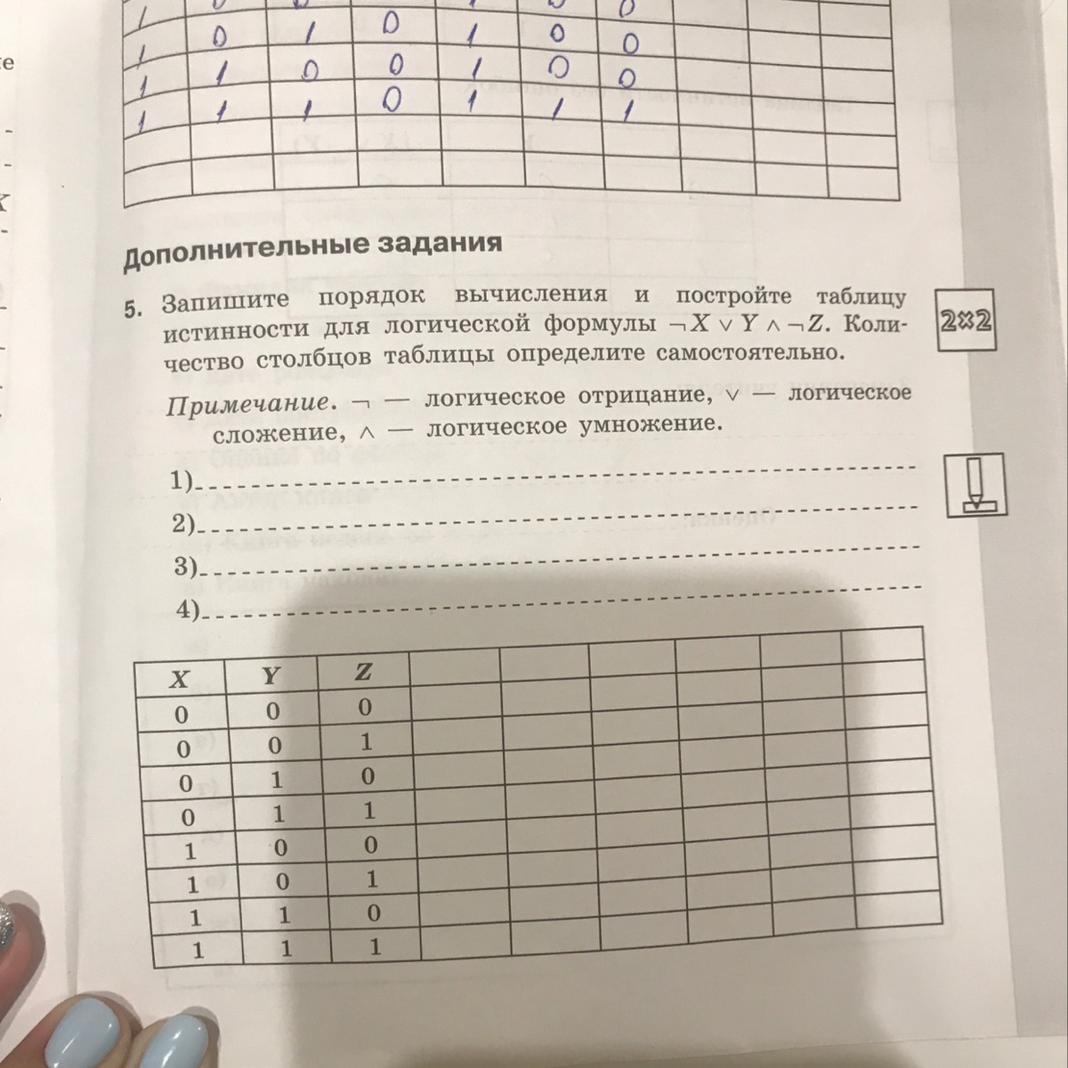 Запишите порядок вычисления и постройте таблицу истинности для логической формулы -| X / Y -|Z. Количество столбцов таблицы определите самостоятельно.