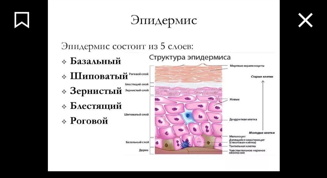 Эпидермис стоит из 5 слоев: