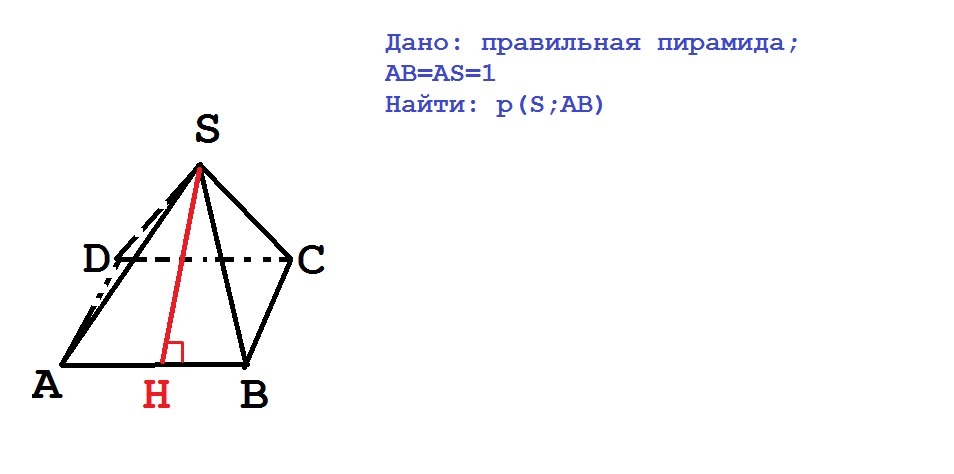В правильной пирамиде SABCD, все ребра которой равны 1, найдите расстояние от вершины S до прямой AB.
