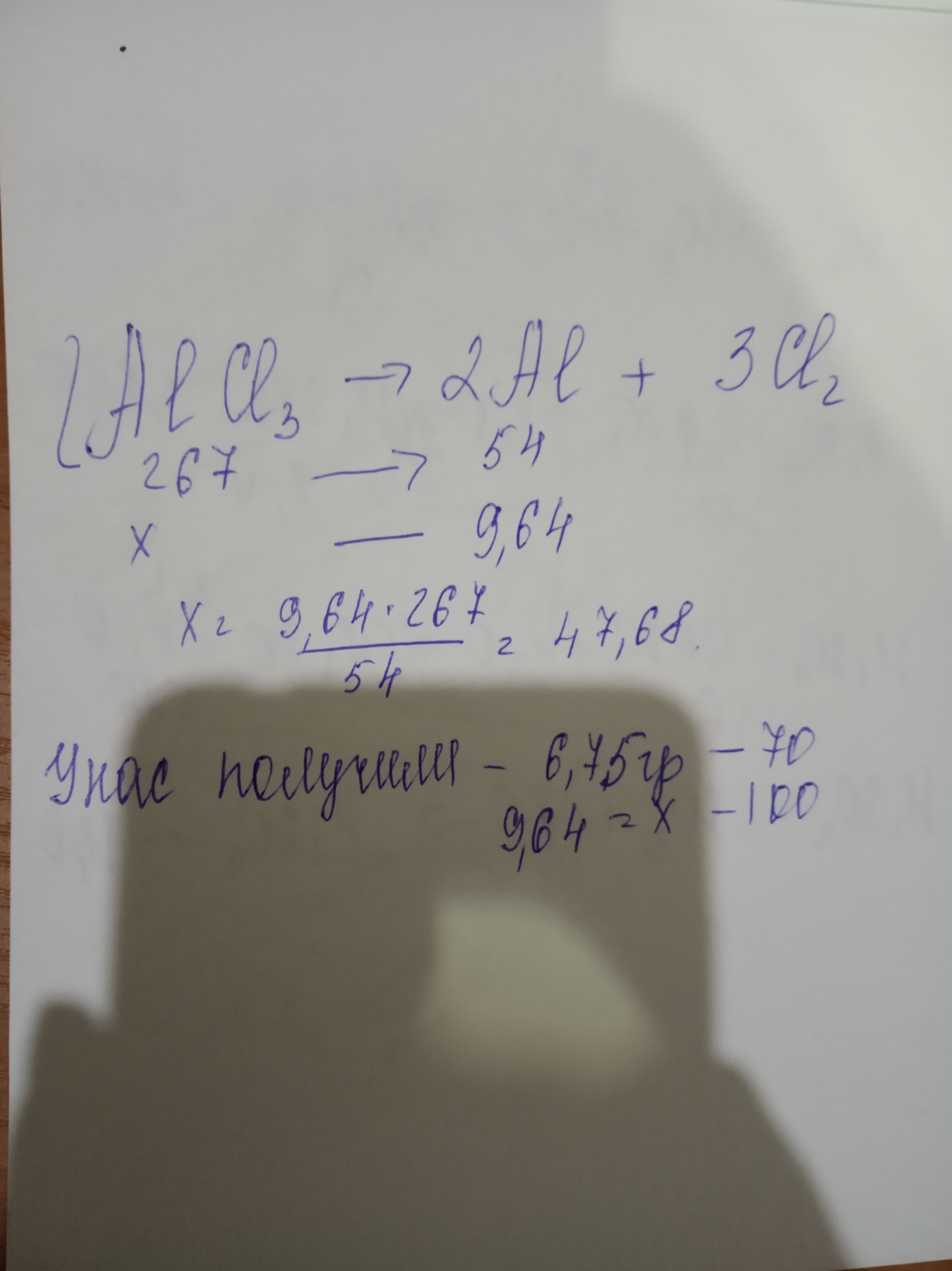 Из хлорида алюминия получен алюминий массой 6,75г, причем доля выхода продукта реакции составляет 70% теоретически возможного. Найдите массу хлорида алюминия.