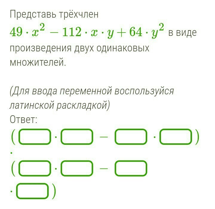 Ответом будет выражение: (7*x-8*y)*(7*x-8*y)