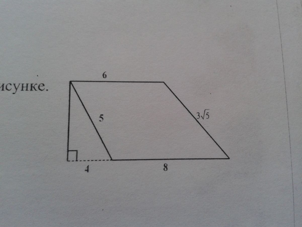 Треугольник образованный высотой и левой стороной трапеции - Египетский, значит гипотенуза = 5, катеты равны 4 и 3. Ответ 3