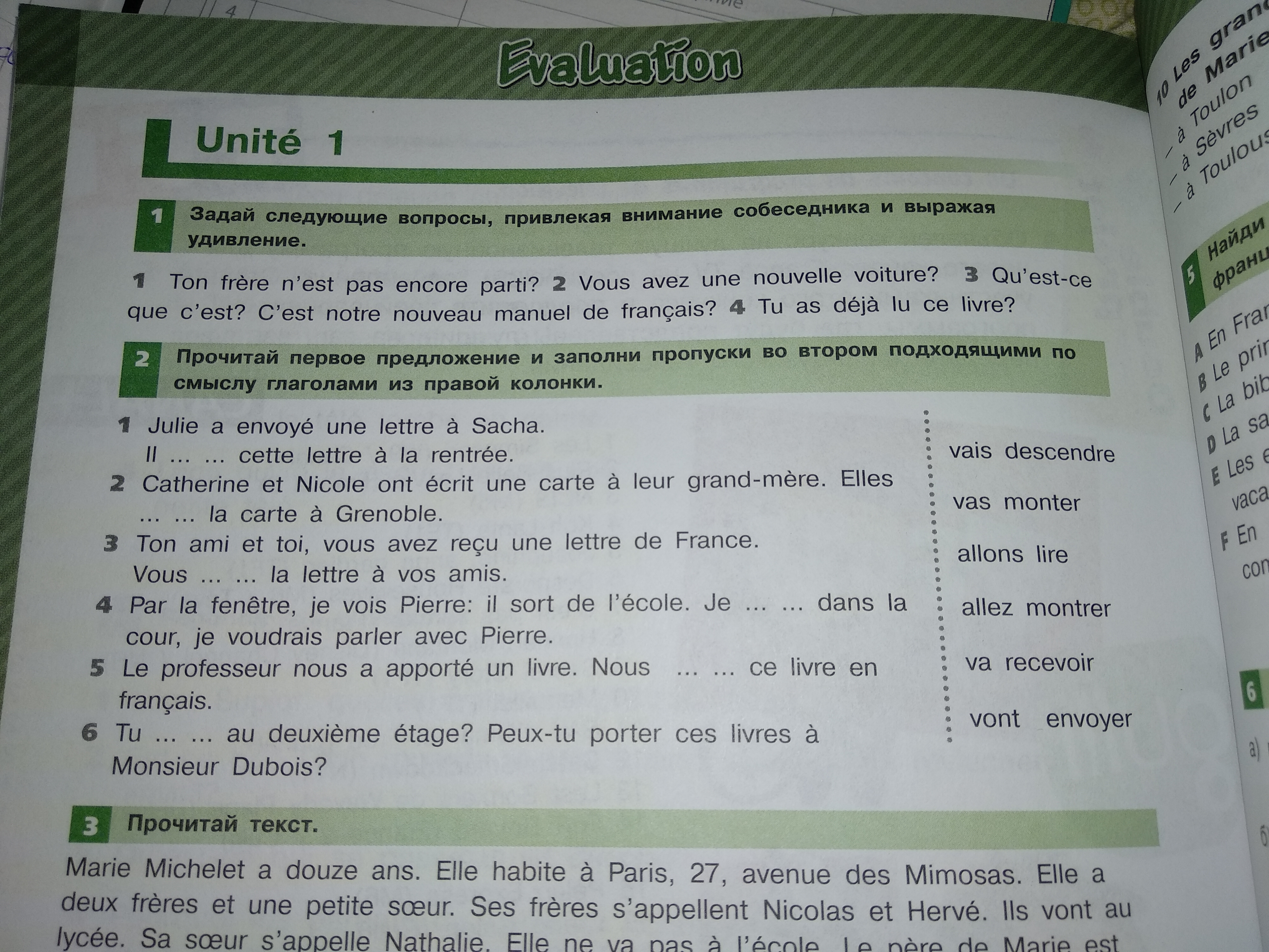 1. va recevoir 2. vont envoyer 3. allez montrer 4. vais descendre 5. allons lire 6. vas monter