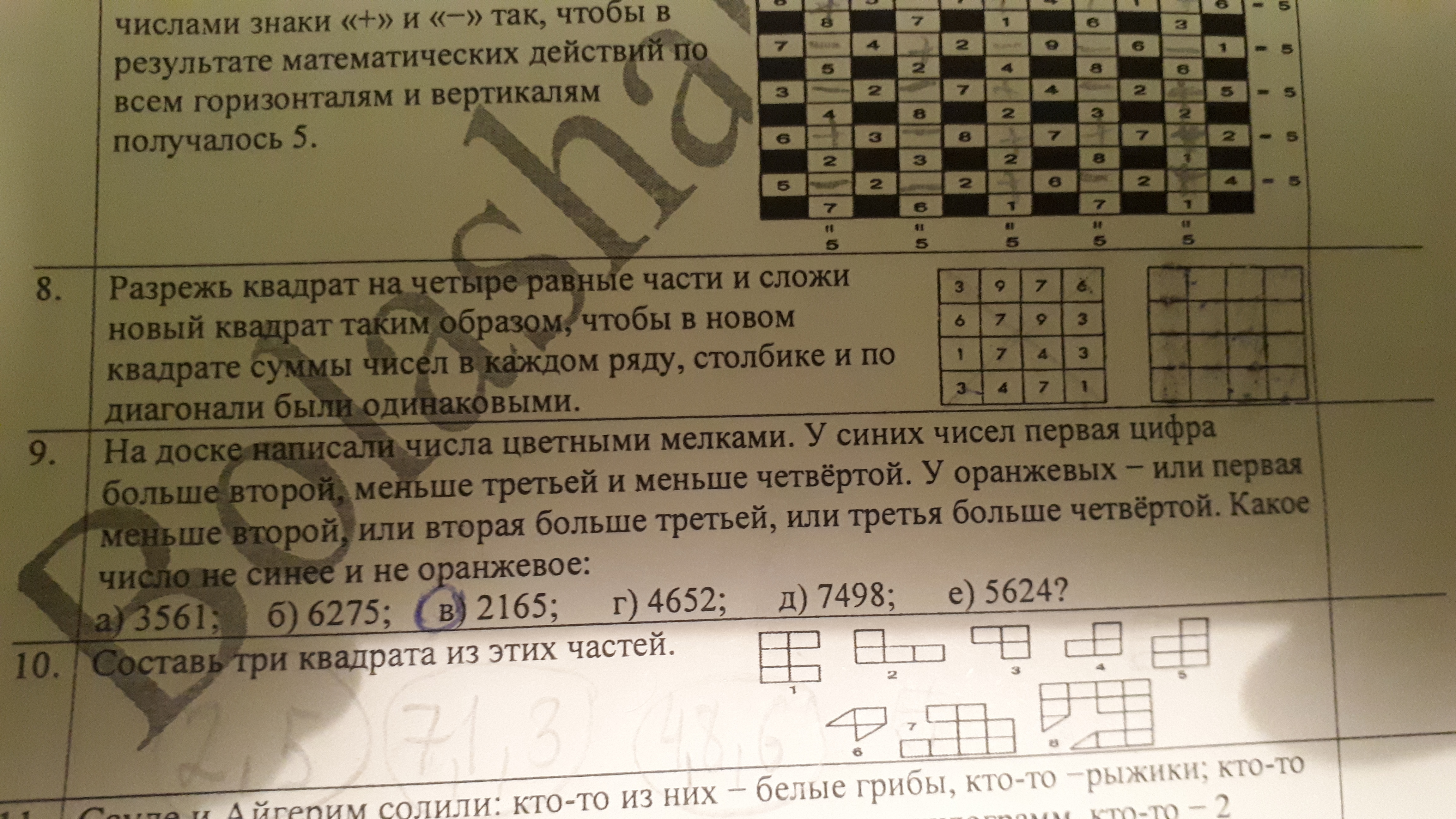 Так как д) является розовой, а в) и е) являются фиолетовыми.