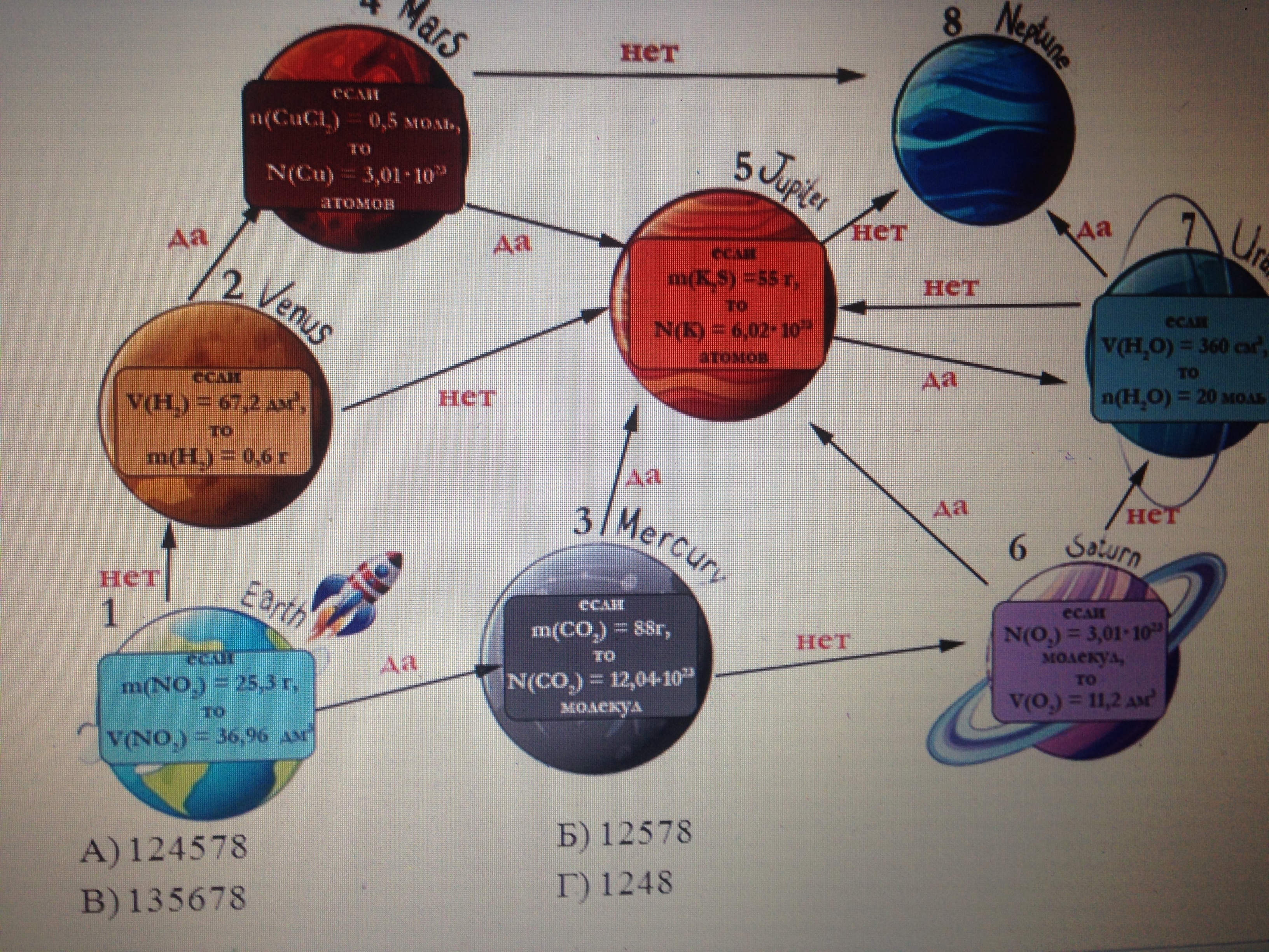 Ракета, стартовавшая с космодрома на планете Земля, должна долететь до планеты Нептун. По пути она побывает и на других планетах. Соглашаясь или нет с утверждениями (начиная с первого), написанными на планетах, определите на каких из них и в каком порядке ракета побывает.