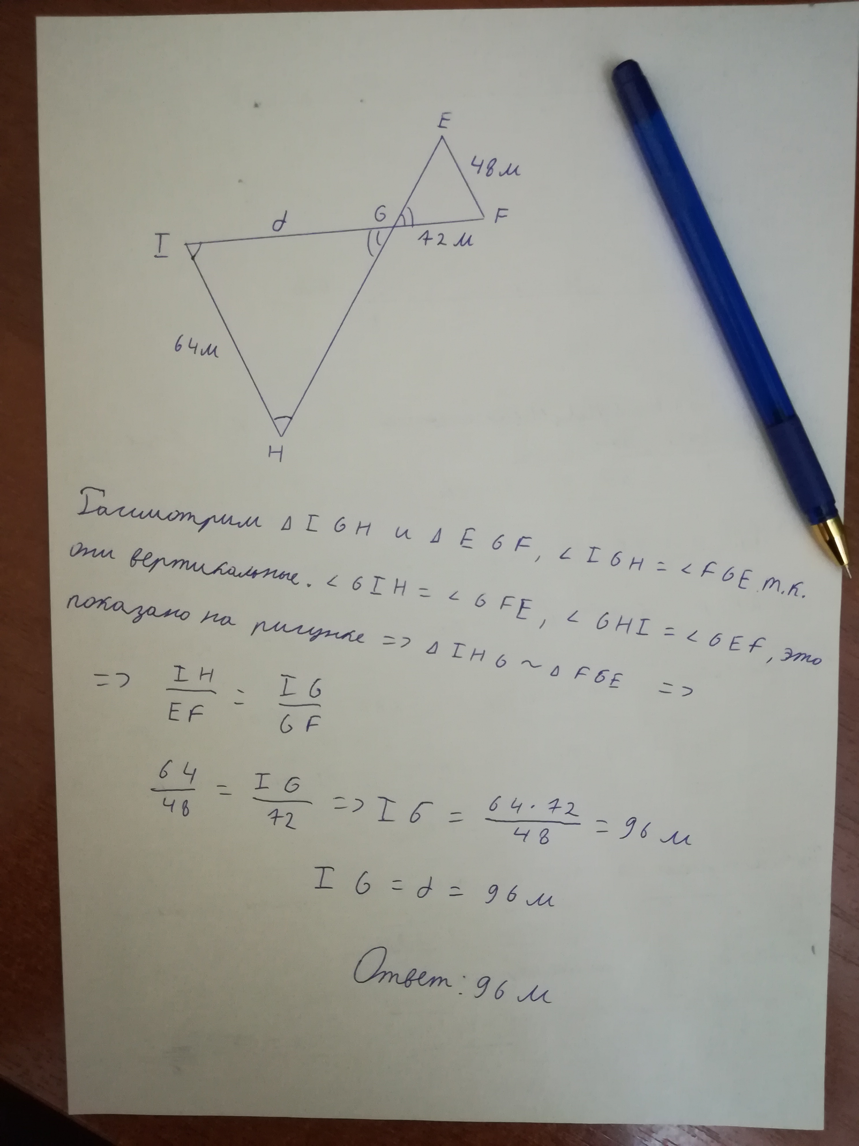 ∆IHG подобен ∆FGE