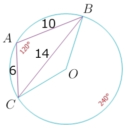 14² = 10² + 6² - 2*10*6*cos(BAC)
