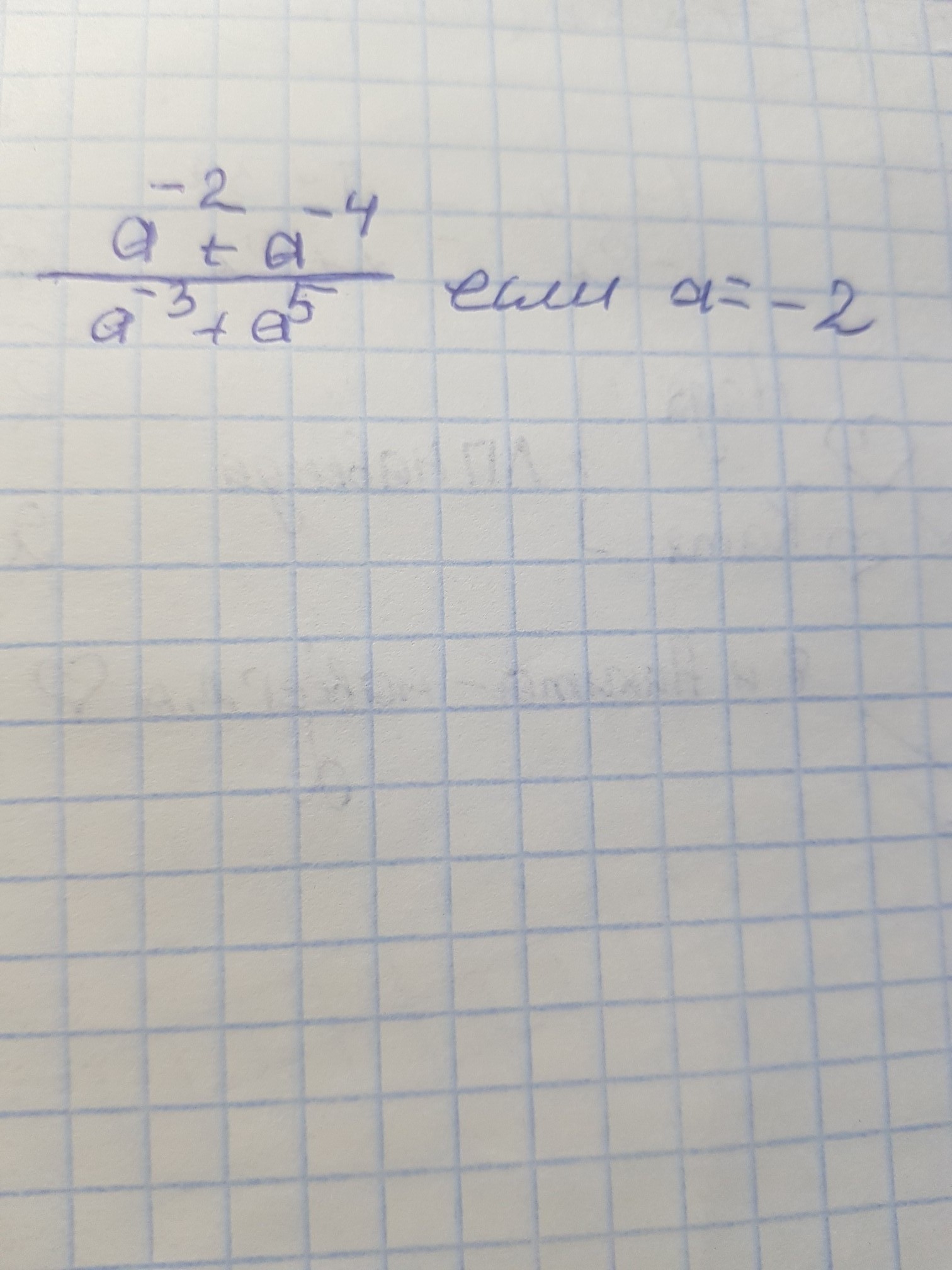 frac{(-2)^-^2+(-2)^-^4}{(-2)^-^3+(-2)^5}=frac{frac{1}{4}+frac{1}{16}}{-frac{1}{8}-32}=frac{frac{5}{16}}{-32,125}=-frac{5}{514}