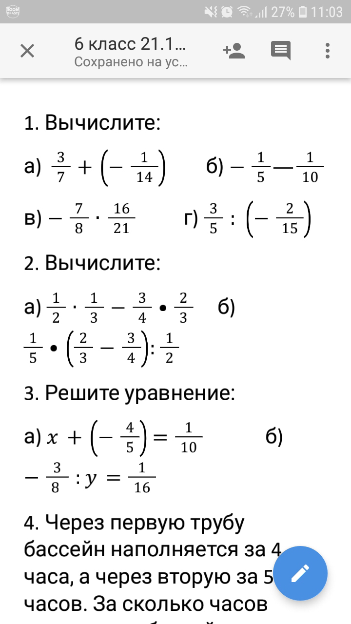 1) 3/7+(-1/14) = 3/7-1/14 = 5/14