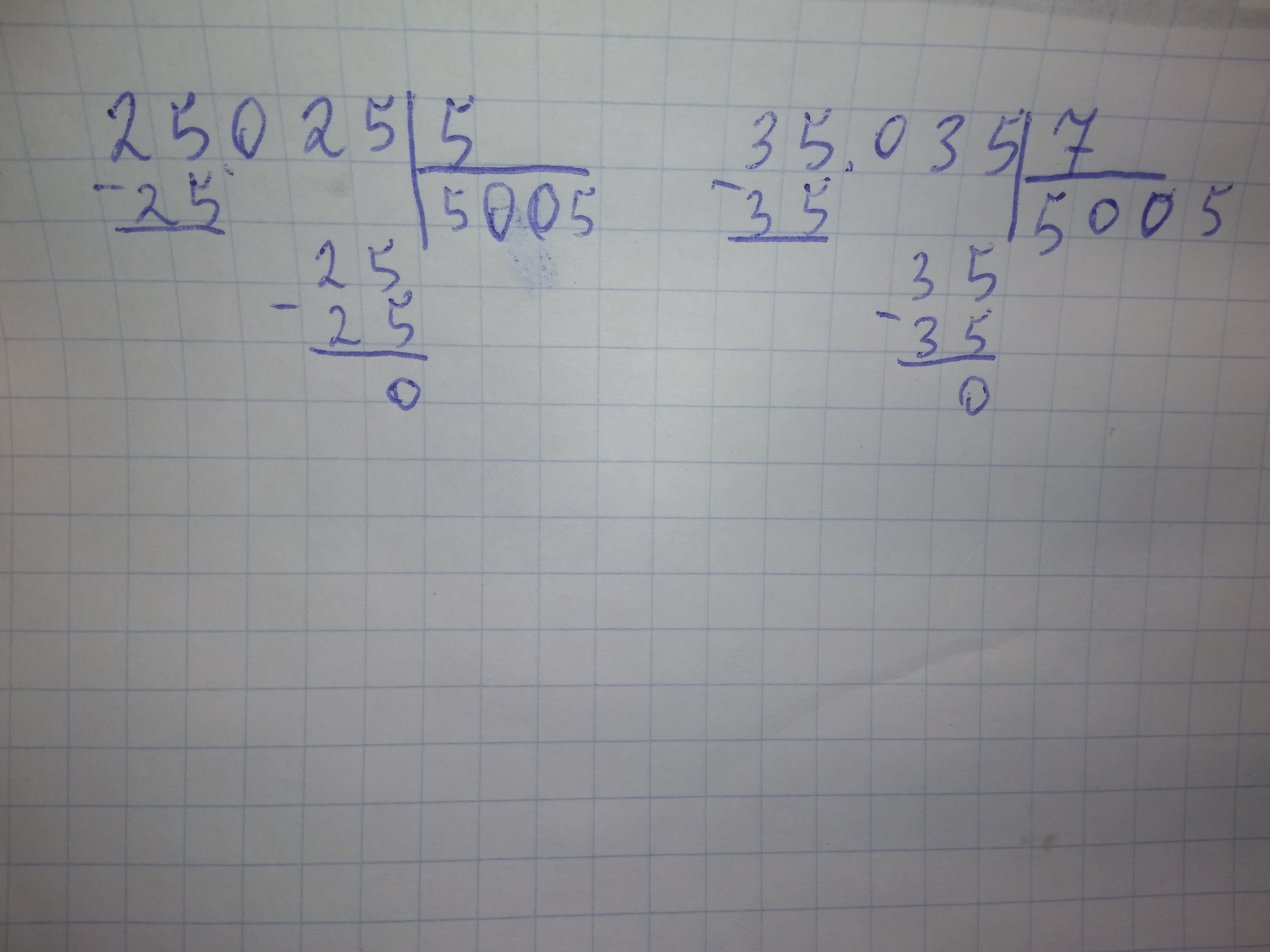 2 НЕ ДЕЛИТСЯ НА 5 БЕРЕМ 25. 25 ДЕЛИТСЯ НА 5 НОЛЬ ПЕРЕНОСИМ. ЕЩЁ ОДИН НОЛЬ ДОБАВИМ В ОТВЕТБ 25 ДЕЛИТСЯ НА 5.