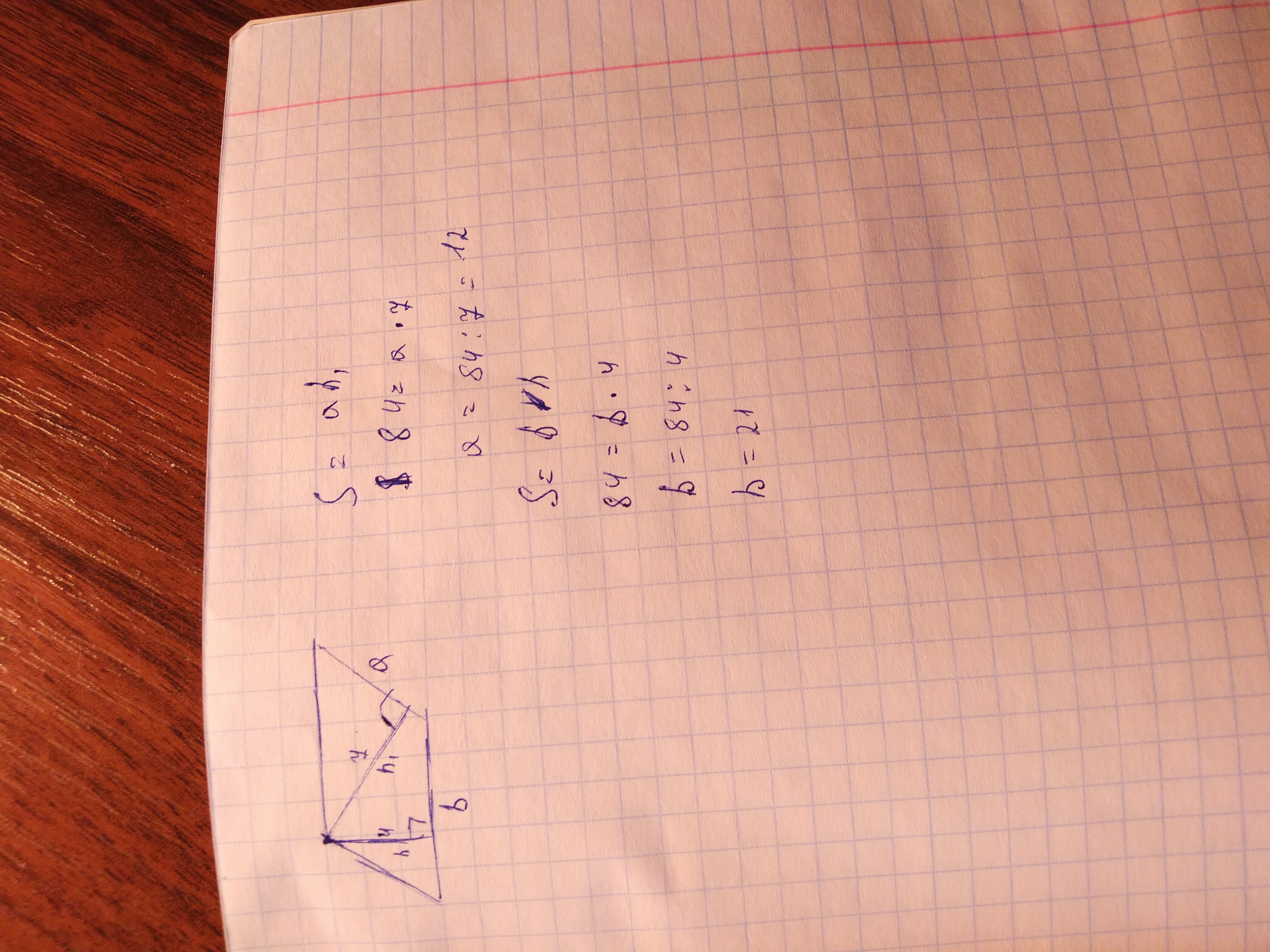 найти сторону параллелограмма если его площадь равна 84 см а высоты проведенные к этим сторонам равны 7 см и 4 см