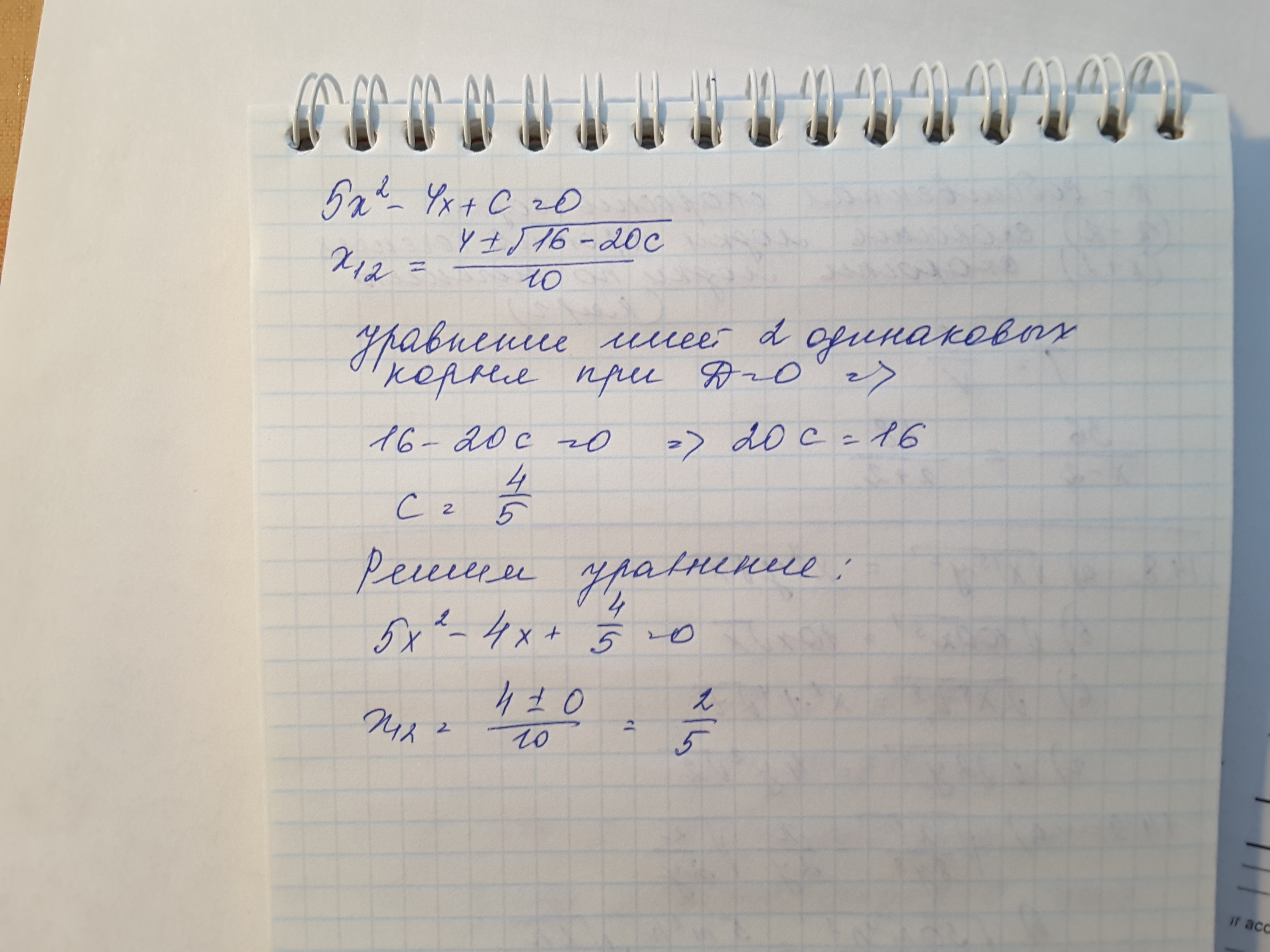 А) при каких параметрах "С" данное уравнение имеет 2 одинаковых корня?