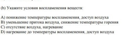 Д)нагревание до температуры воспламенения,доступ воздуха