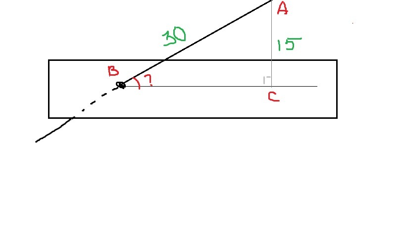 Найдите угол между наклонной АВ и плоскостью альфа, если длина АВ равна 30 см, а точка А удалена от плоскости альфа на 15 см.