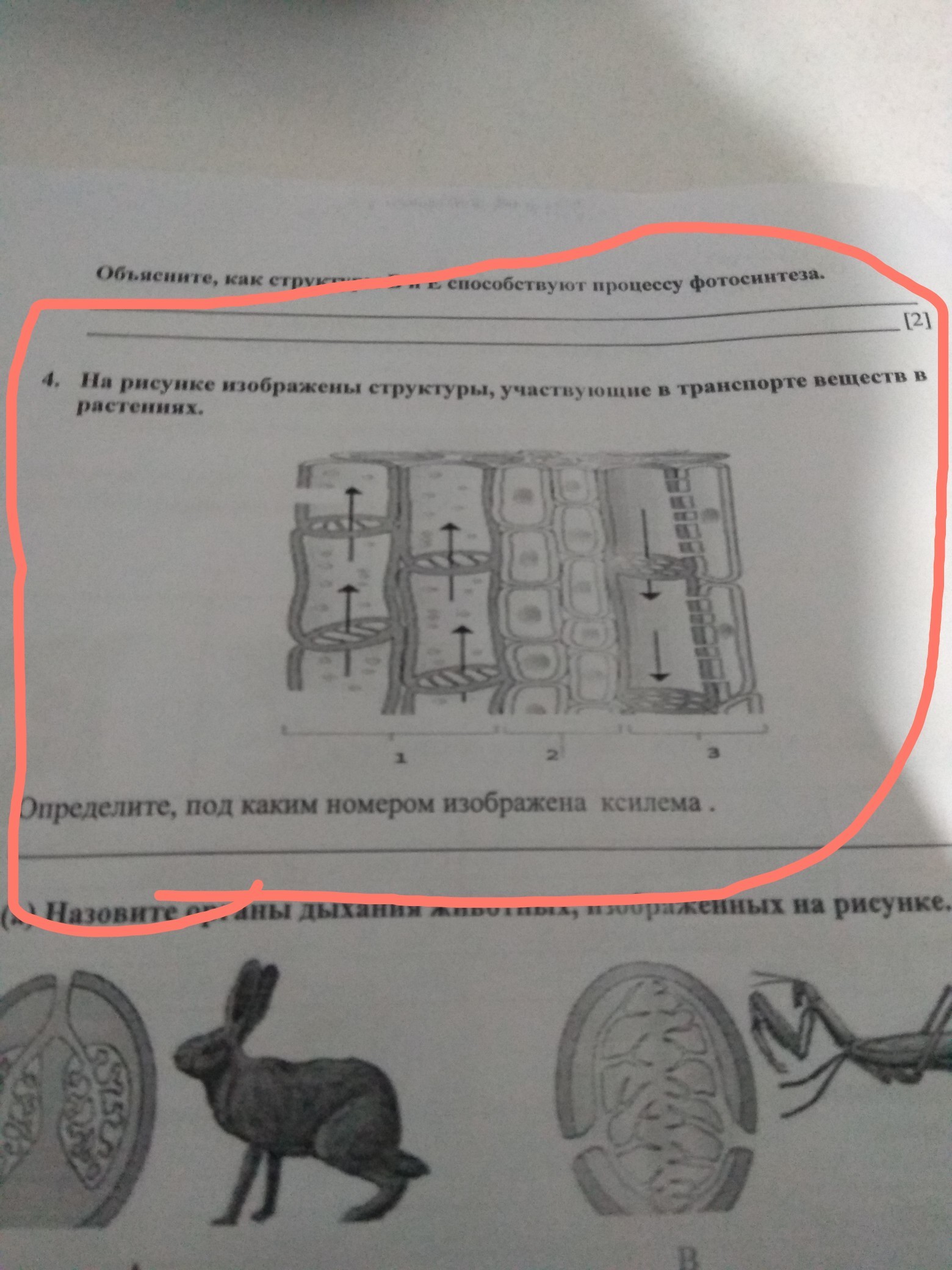 На рисунке изображены структуры участвующие в транспорте веществ в растениях Определите Под каким номером изображена ксилема