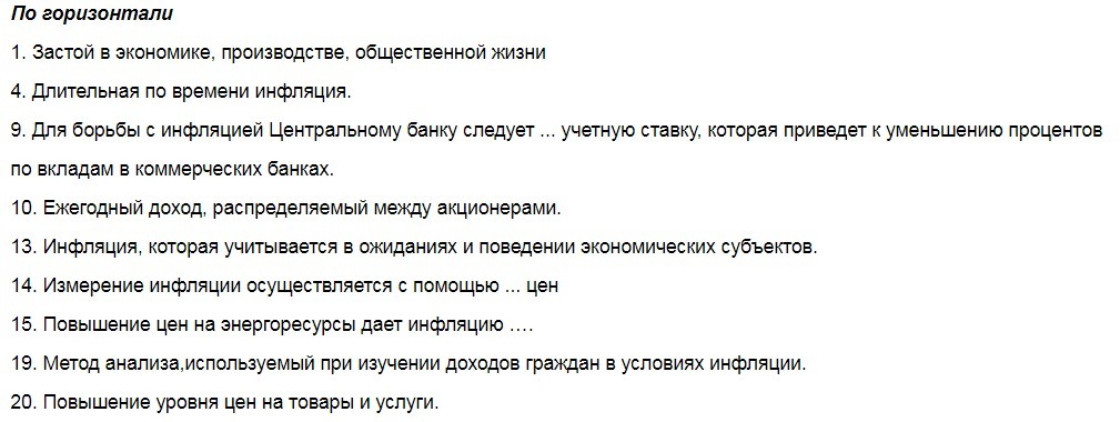 помогите пожалуйста составить кроссворд на тему *Инфляция* (экономика),10 по горизонтали и 10 по вертикали