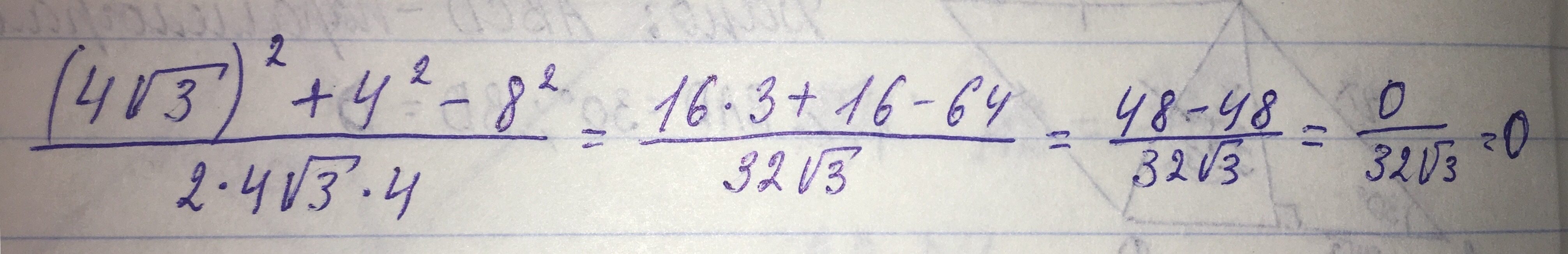 (4 корней из 3)(в квадрате ) + 4 ( в квадрате) - 8 ( в квадрате)