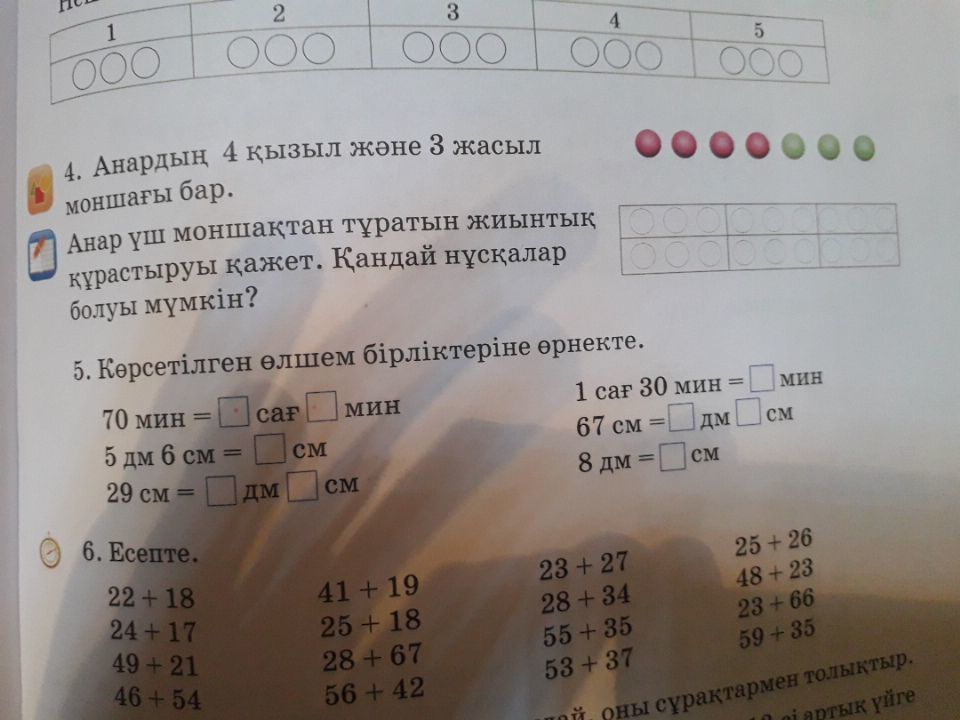 Анардың 4КЫЗЫЛ ЖӘНЕ 3жасыл моншағы бар.Анар үш моншактан тұратын жиынтық құрастұрыуы қажет.қандай нұсқалар болуы мүмкін?