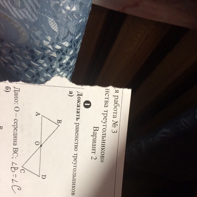 т.к. <B=<C, BO=CO (по условию) <AOB=<COD (вертикальные), то