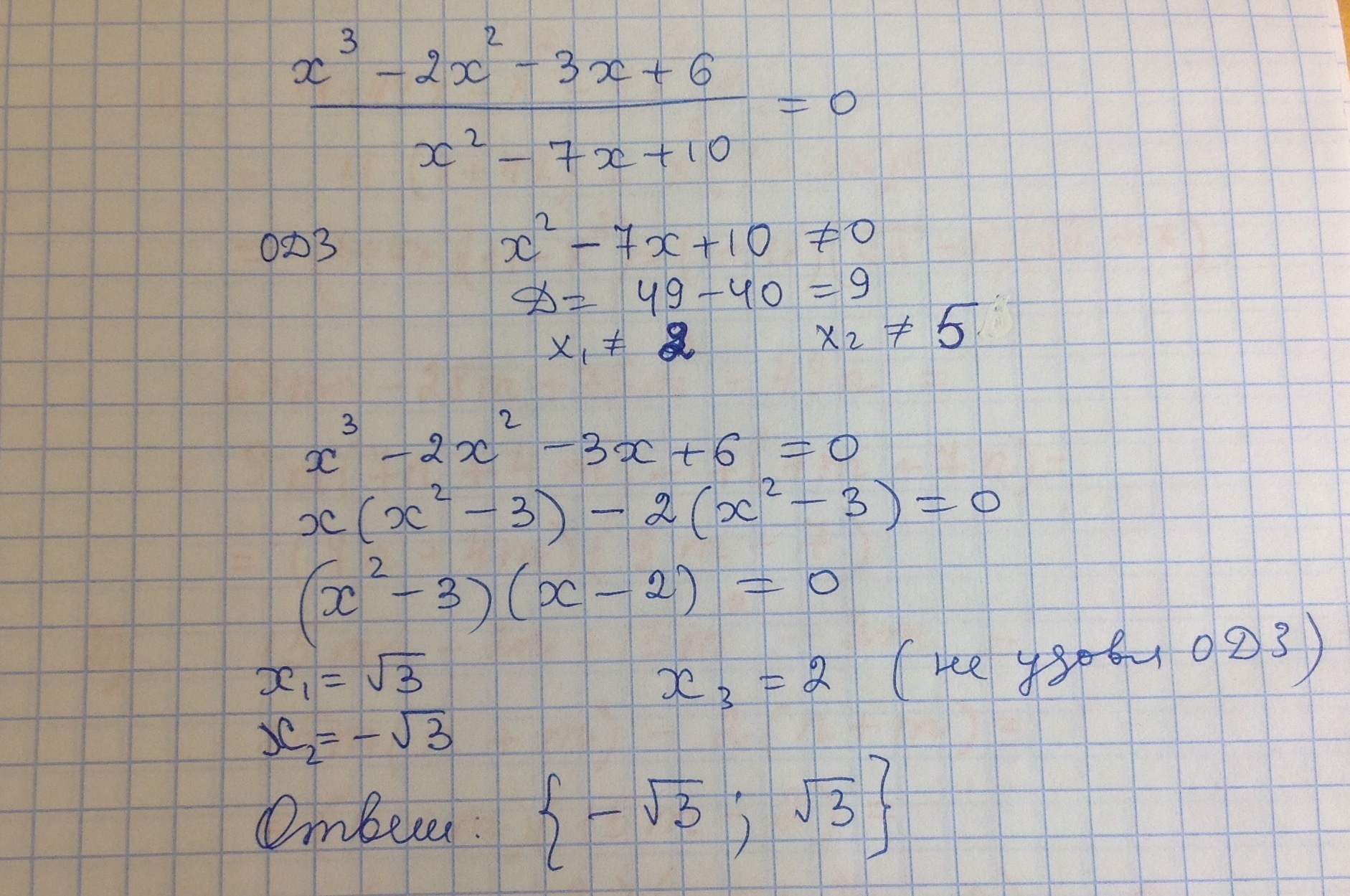 1)x^3-2x^2-3x+6/x^2-7x+10 =0