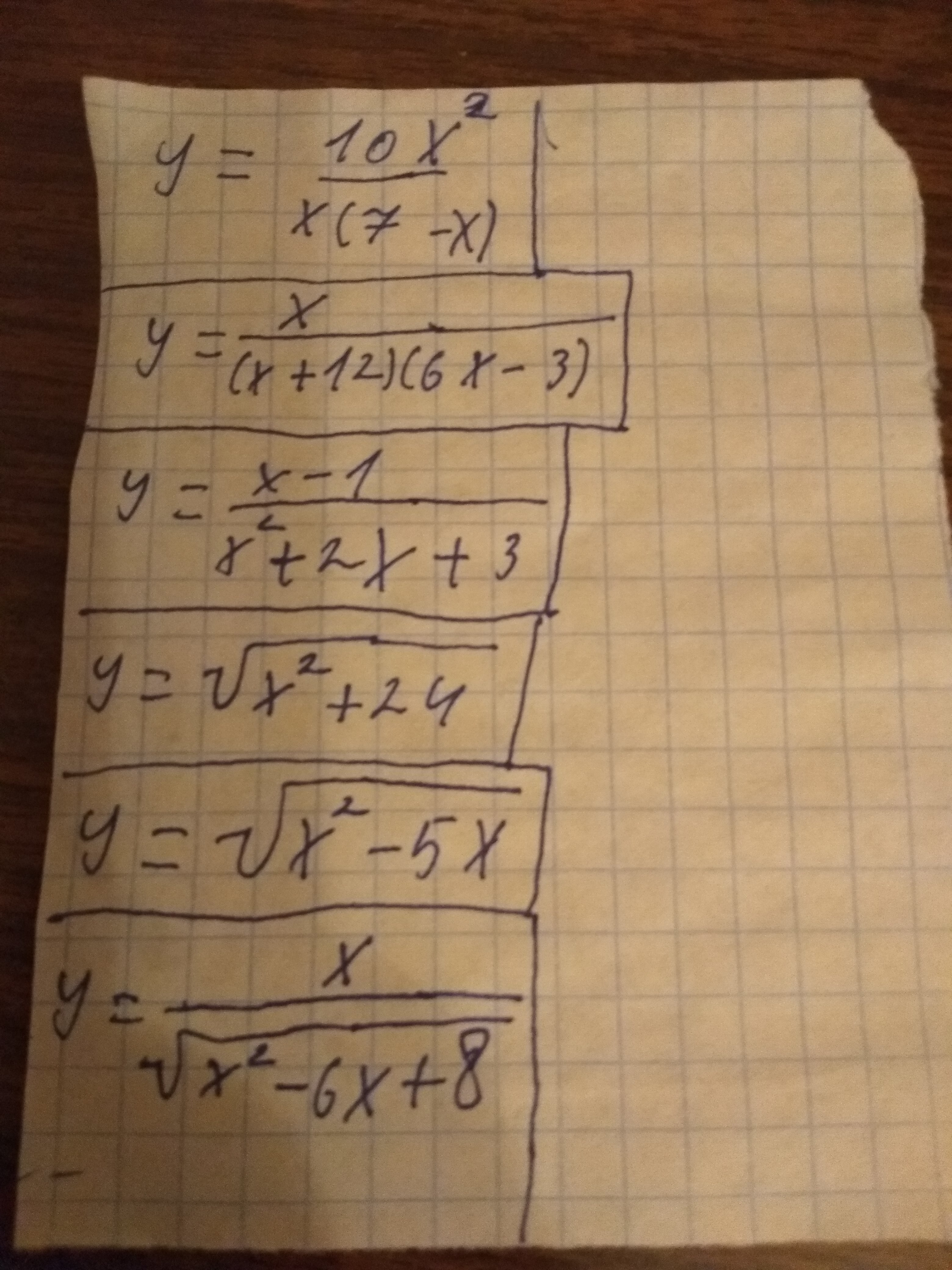 1) 10*x^2/(x(7-x))=y; в одз не попадет x(7-x)=0 тк на 0 делить нельзя;
