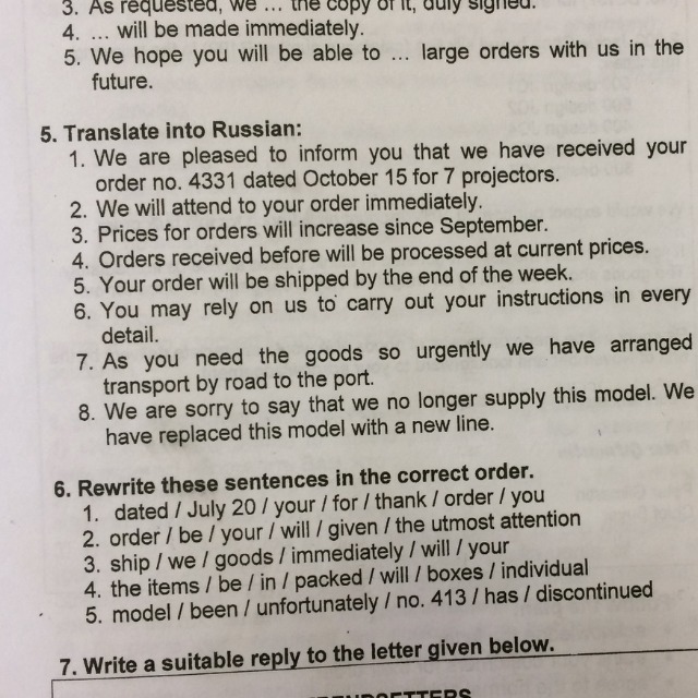 Составить правильно 3 предложение в 6 упражнении. Думал будет правильно так, но учитель сказал что нет We will ship your goods immediately.