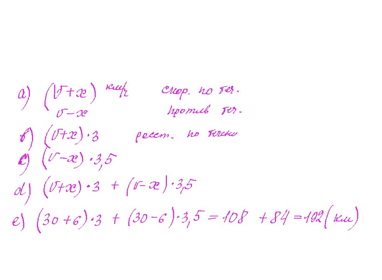 d) Общего расстояния, пройденного теплоходом по течению реки и против течения реки.