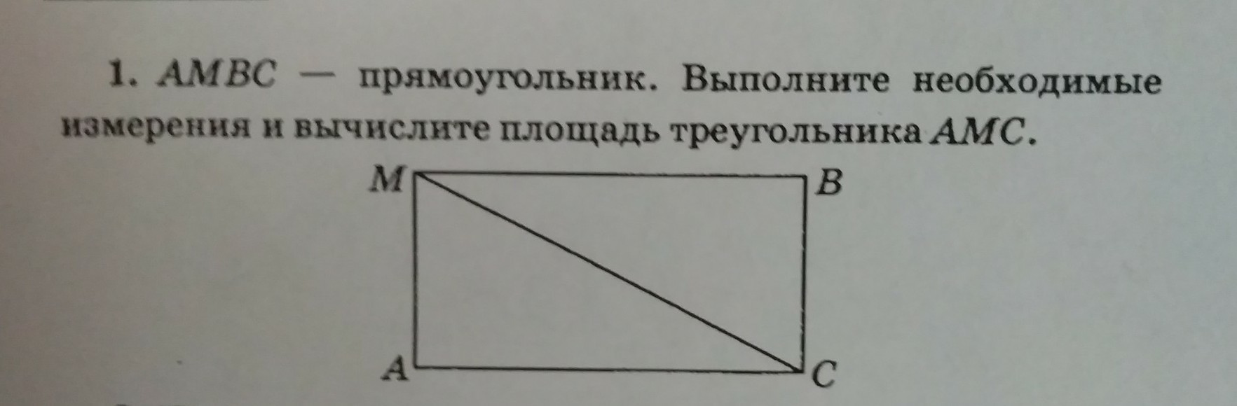 Линейкой найди стороны ширины и длины, и найди площадь, после чего раздели на 2