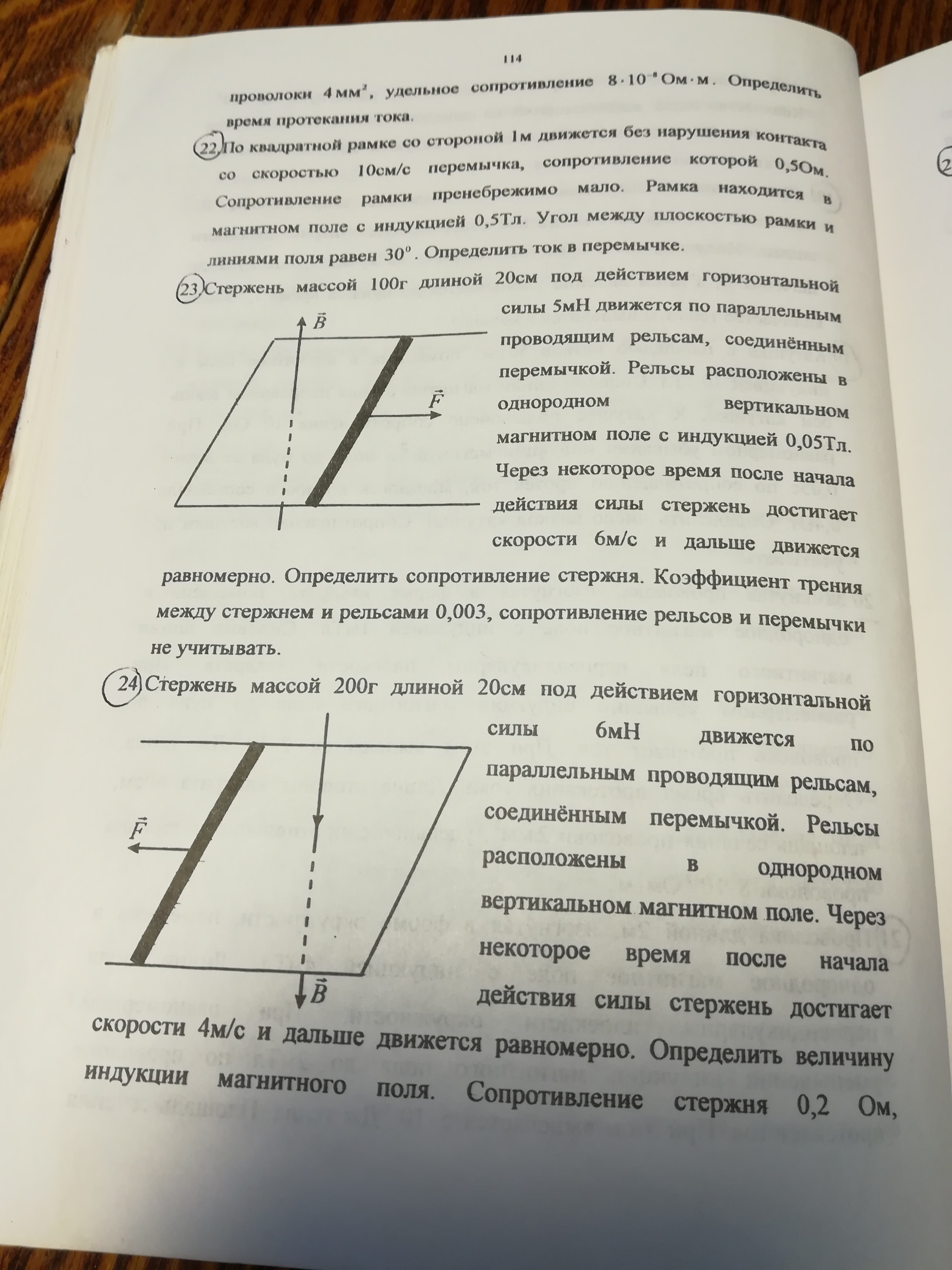 При равномерном движении Fтяги=Fтр+Fампера, Fамп=5-3=2 мН. С другой стороны Fамп=В²l²*v/R (по модулю), откуда R= B²l²v/Fамп=0.05²*0.2²*6*1000/2= 0.3 Ом -ответ