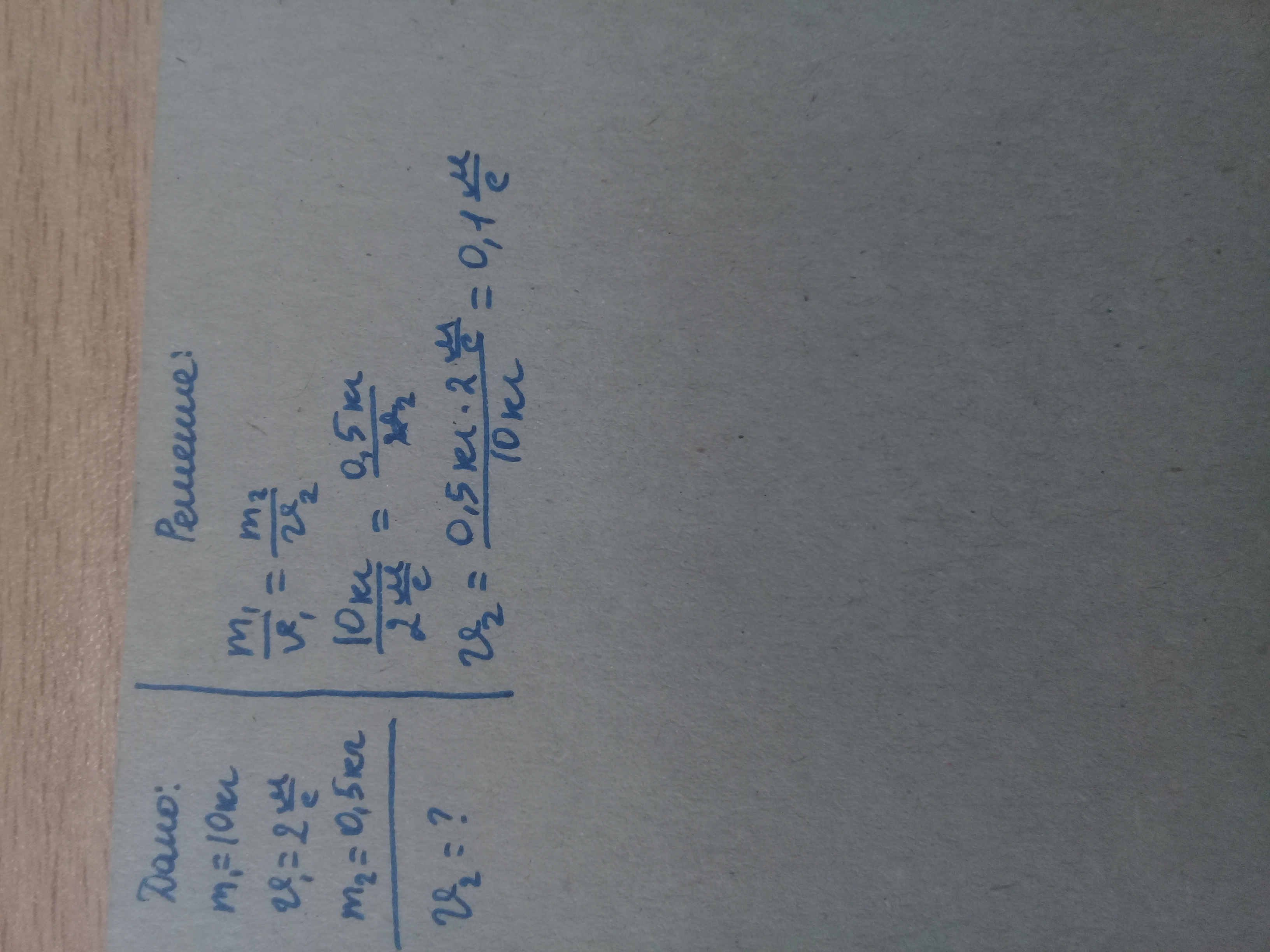 тележка с песком массой 10 кг катиться со скоростью 2 м/с. в тележку падает песок массой 500 гр. С какой скоростью прокатиться тележка после попадания песка?