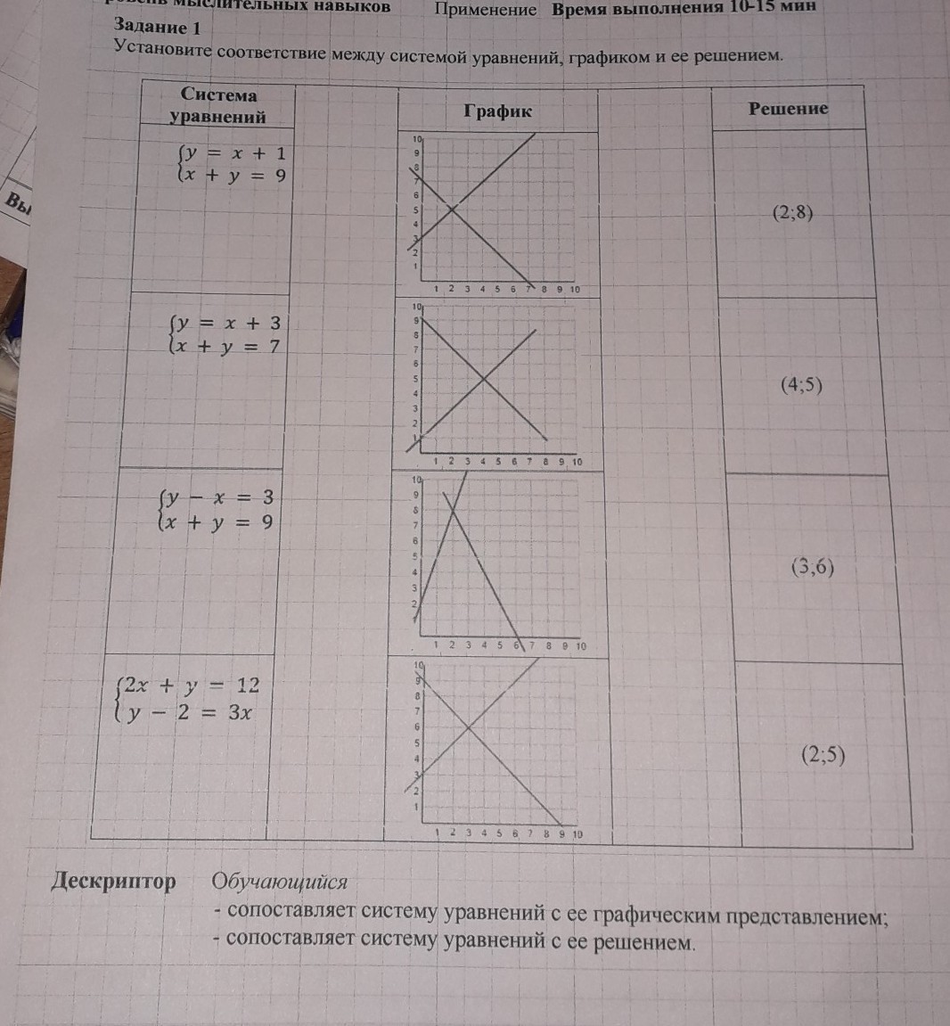 Установите соответсвие между системой уравнений, графиком и ее решением. ПОМОГИТЕ ПОЖАЛУЙСТА!!!!
