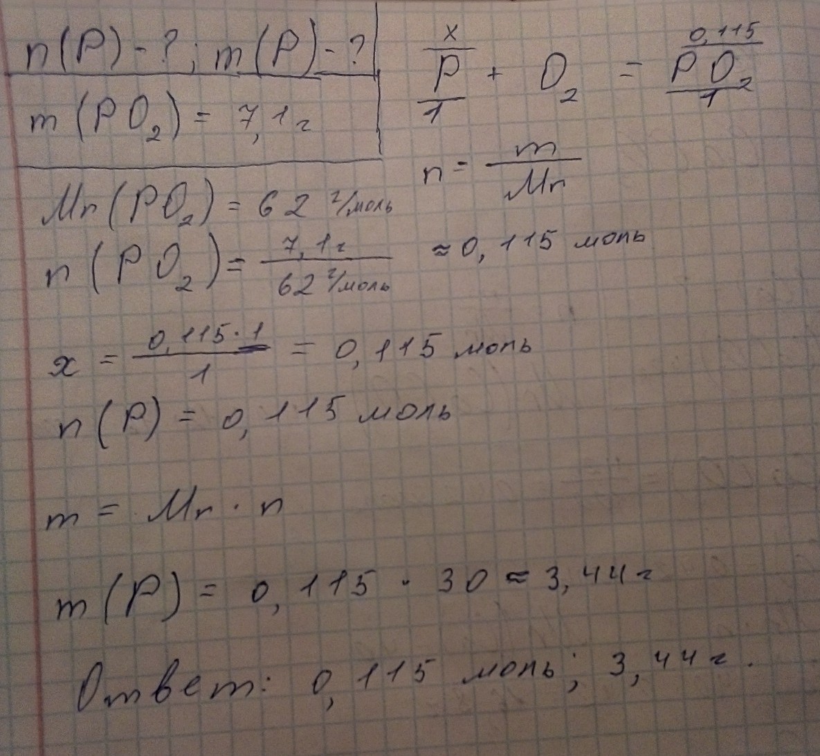 Какую массу и количества вещества фосфора нужно сжечь для получения оксида фосфора (V) массой 7.1 г