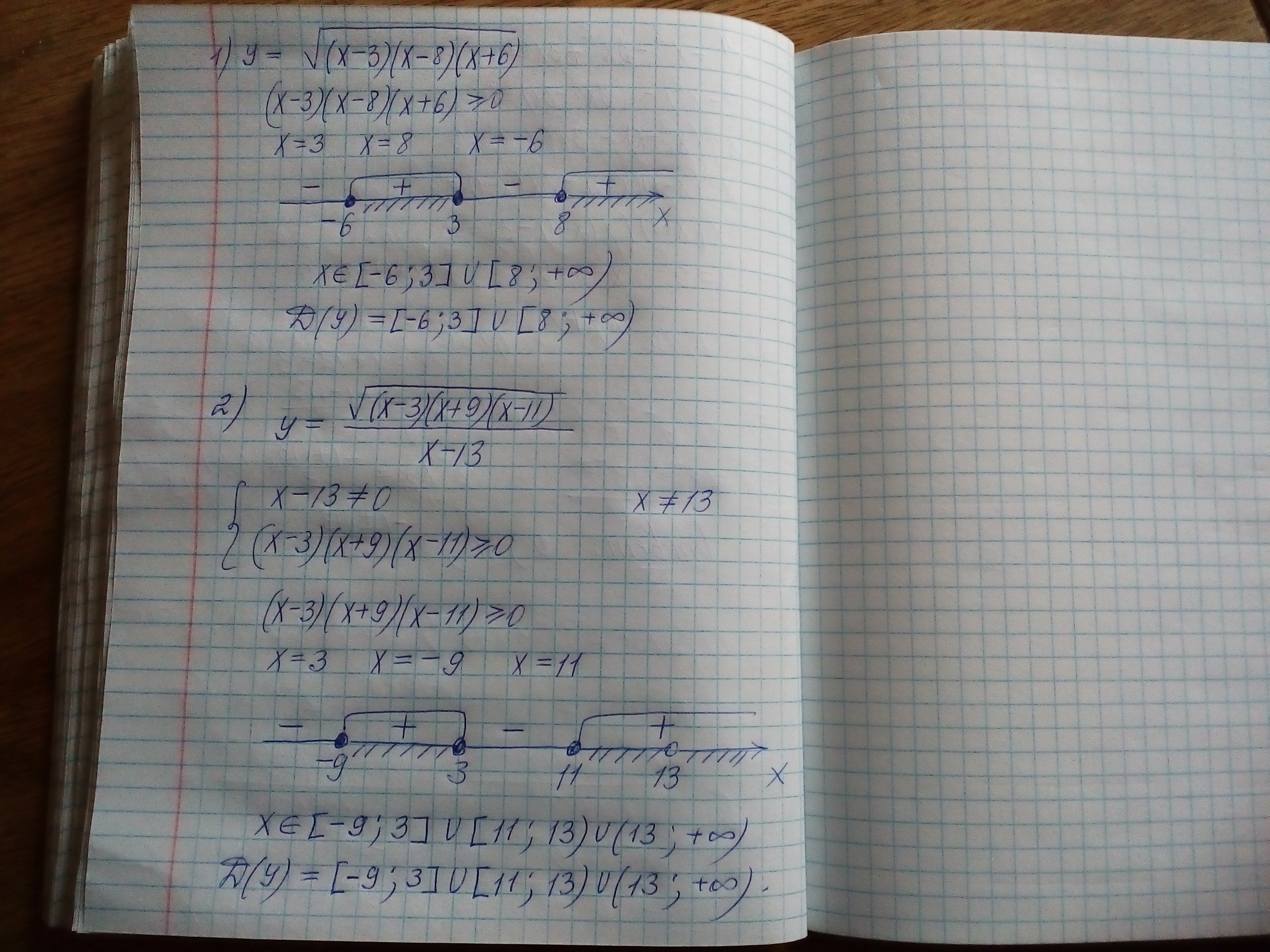 2. y=√(x-3)(x+9)(x-11)/x-13