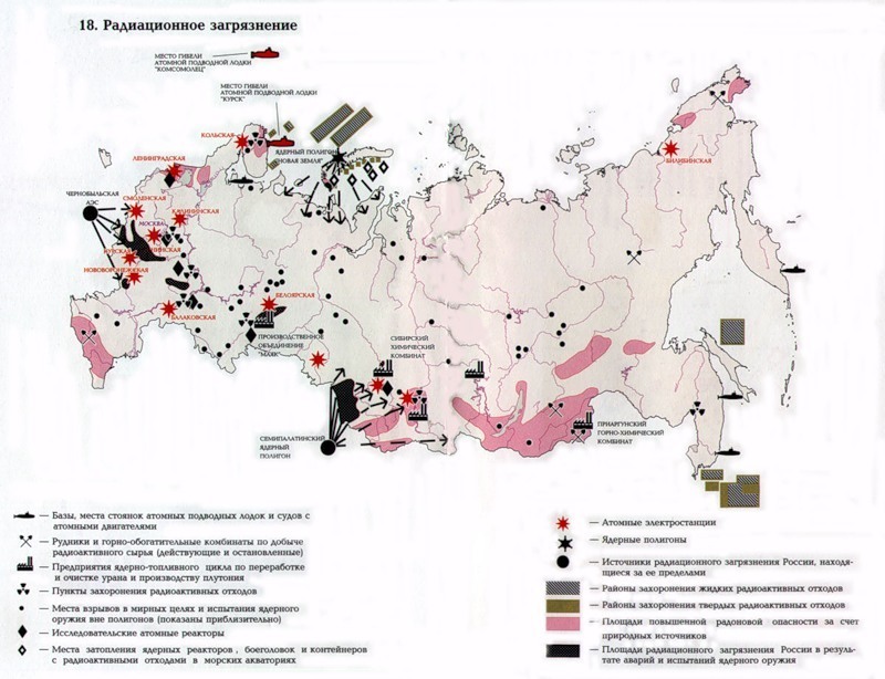 3.На основе анализа карты (Рис 3) укажите самые радиационно-загрязненные территории России. Обоснуйте свой ответ.