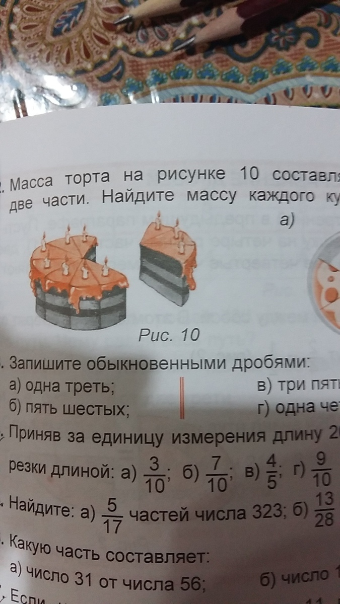 Масса торта на рисунке 10 составляет 2450 г. Он разделен на две части.Найдите массу каждого куска торта