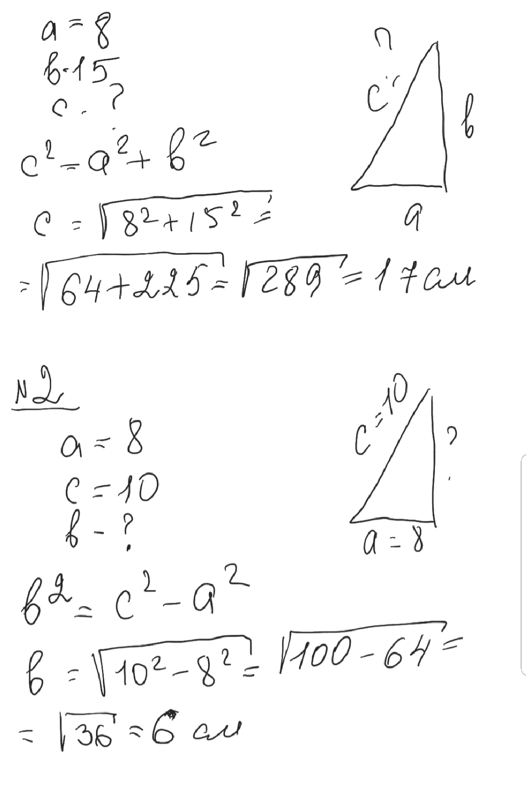 У прямоугольного треугольника заданы катеты а и b найдите гипотенузу с,если а=8, b=15