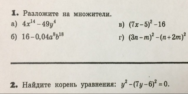 а) (2х^7)^2-(7у^2)^2=(2х^7-7у^2)(2х^7+7у^2)