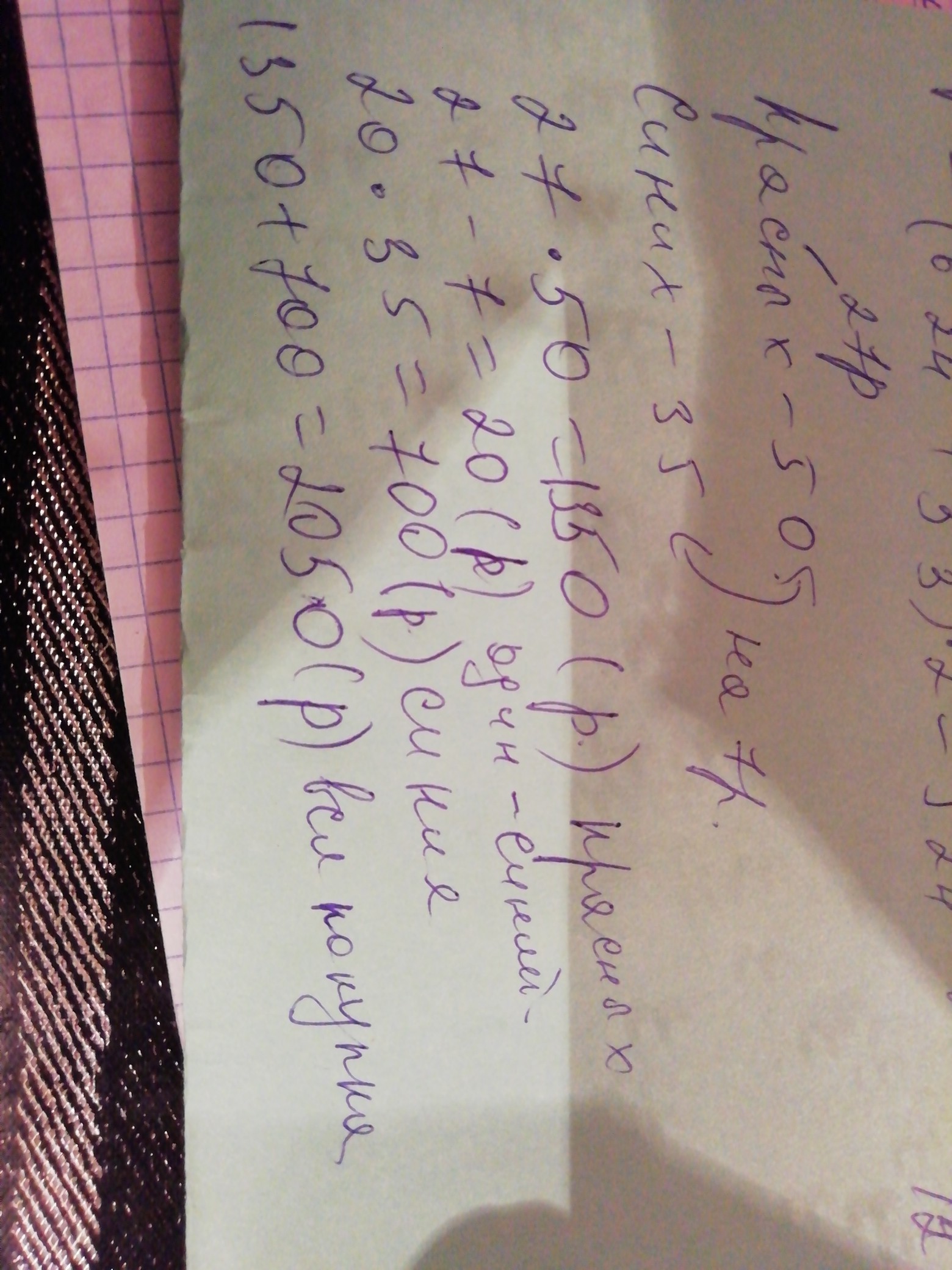 дла школьного праздника купили 50красных шаров и 35 синих шаров цена красного шара меньше цены синего на 7 р.какова стоимость всей покупки если цена красного шара 27р?