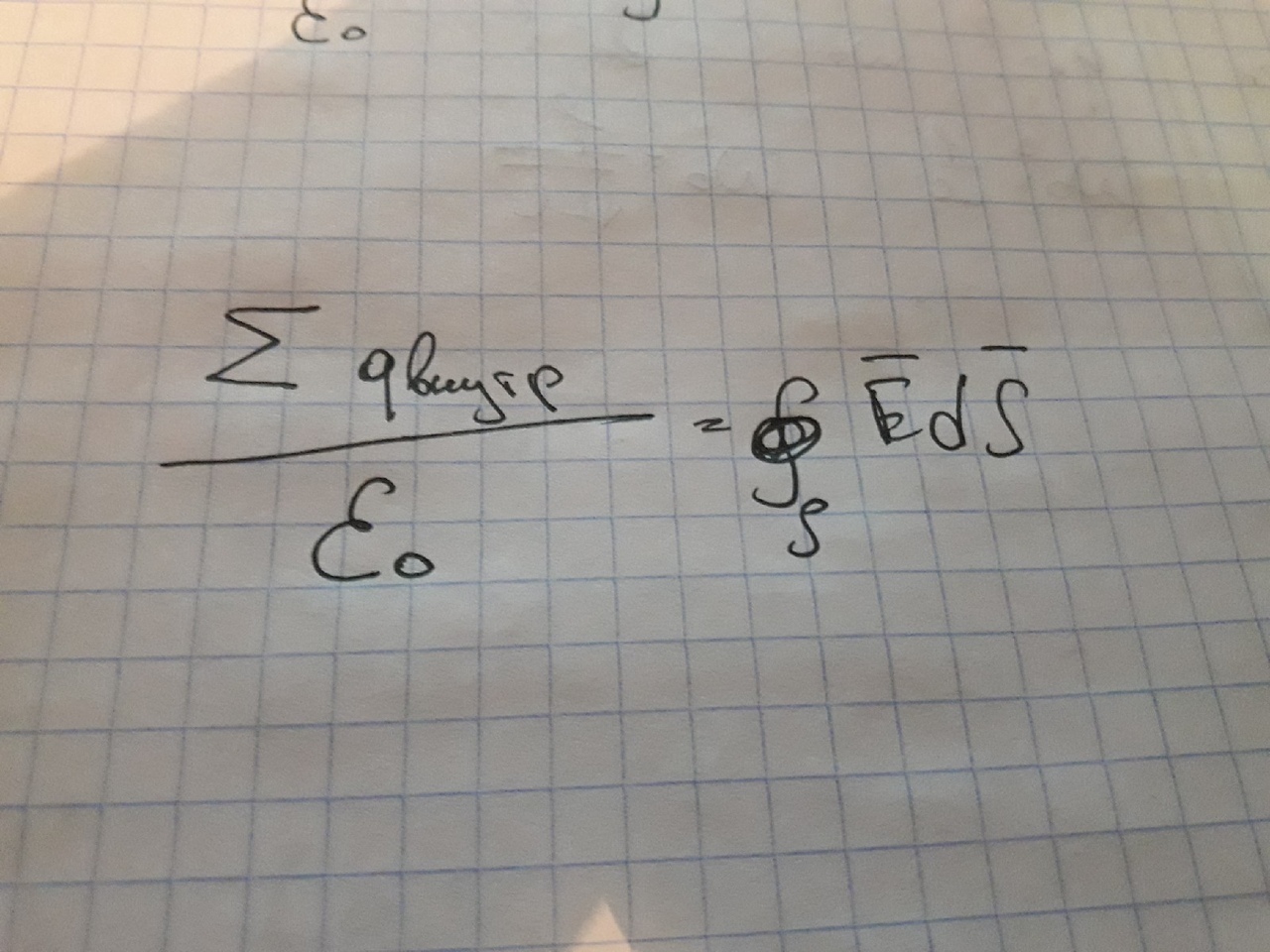 Слева: в числителе суммарный заряд q, содержащийся в объеме, который ограничивает поверхность S, ну а в знаменателе - электрическая постоянная ε₀.