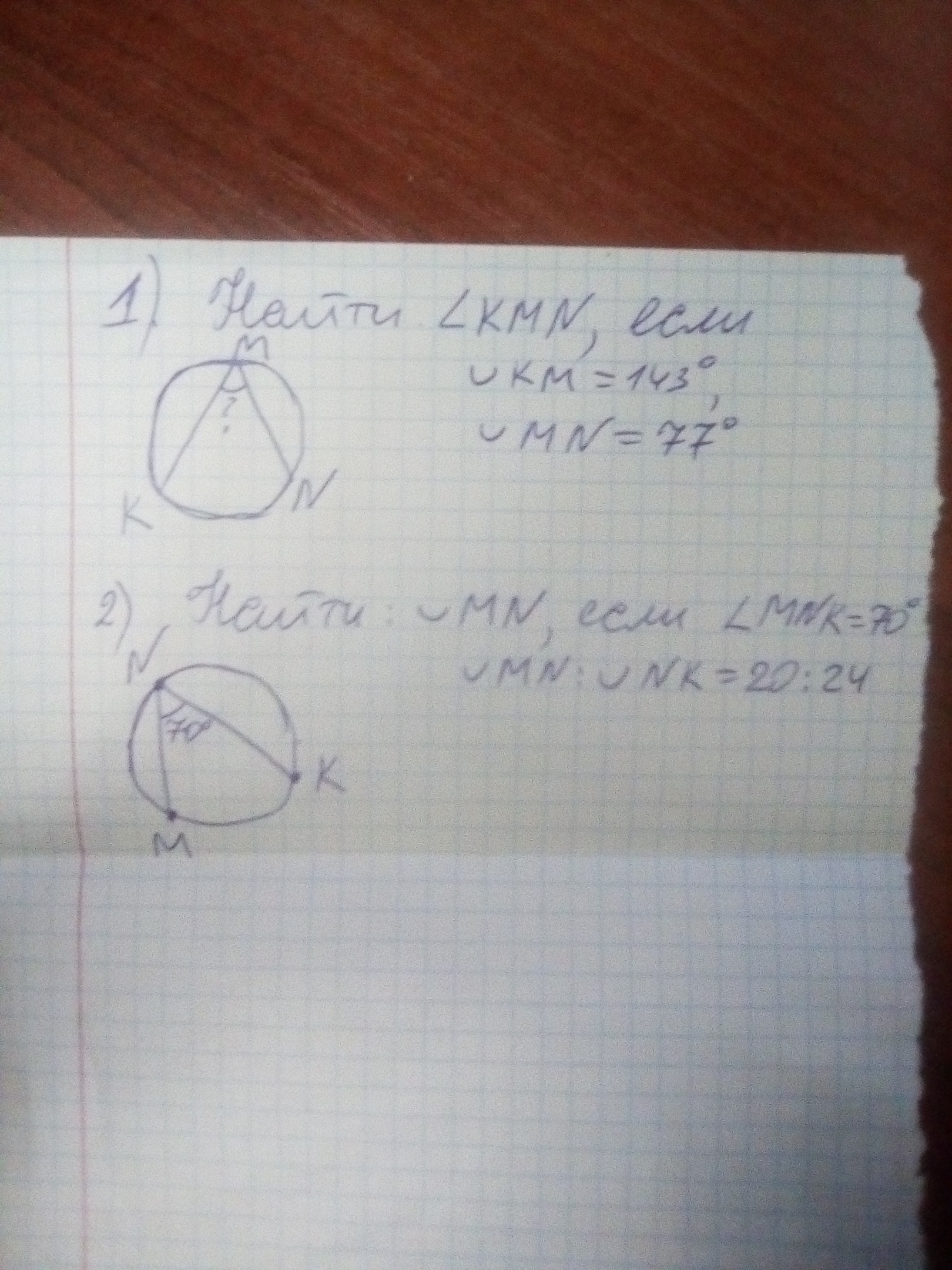 2)∠MNK-вписанный и опирается на ∪MK, значит ∪MK=70°·2=140°