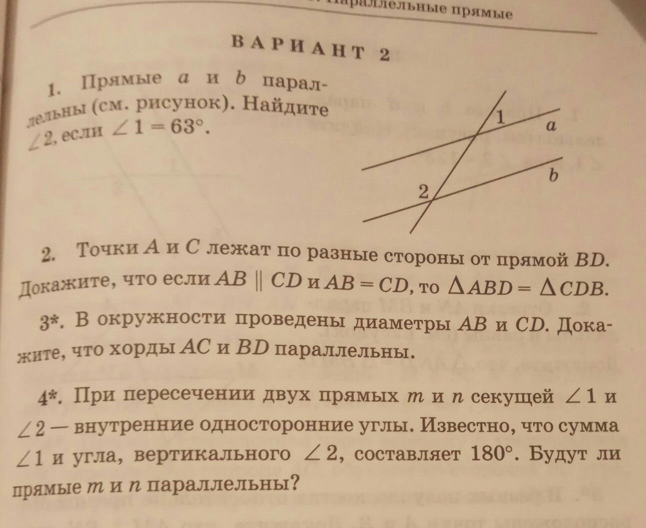 при пересечении двух прямых m и n секущей угол 1 и угол 2 внутренние односторонние углы известно что сумма угла 1 и угла вертикального 2 составляют 180 градусов будут ли прямые m и n параллельны