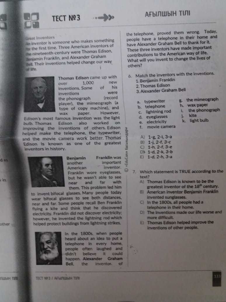 7. E) Thomas Edison helped improve the inventions of other people.